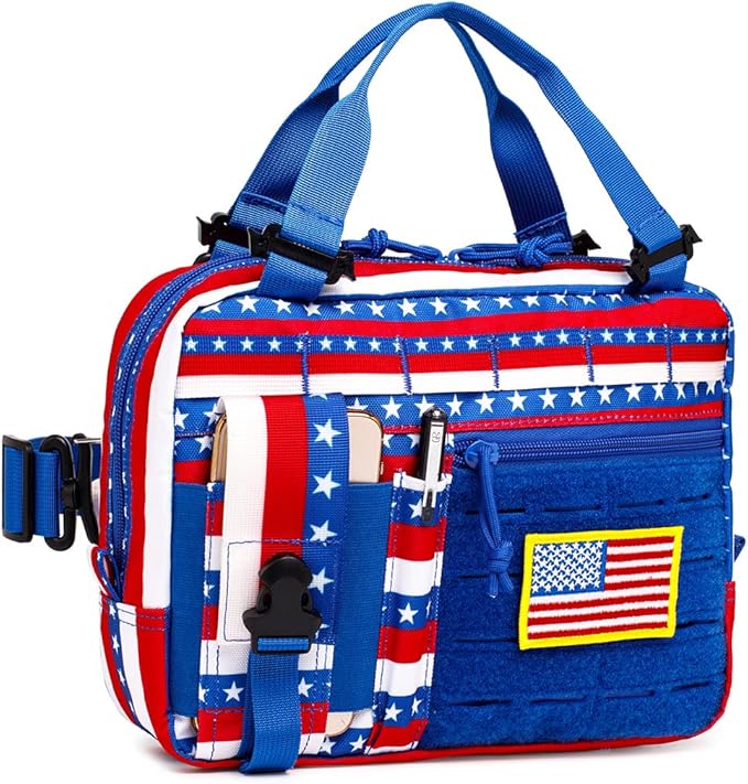 - FRONT LASER-CUT LOOP : Tactical admin pouch utilized the stackable laser cut front loop material Molle platform for storing additional tools, mounting memorable patches, adding customization/tactical ID, attaching additional MOLLE gear. Adding our free flag patch will makes it more conspicuous and fashionable.