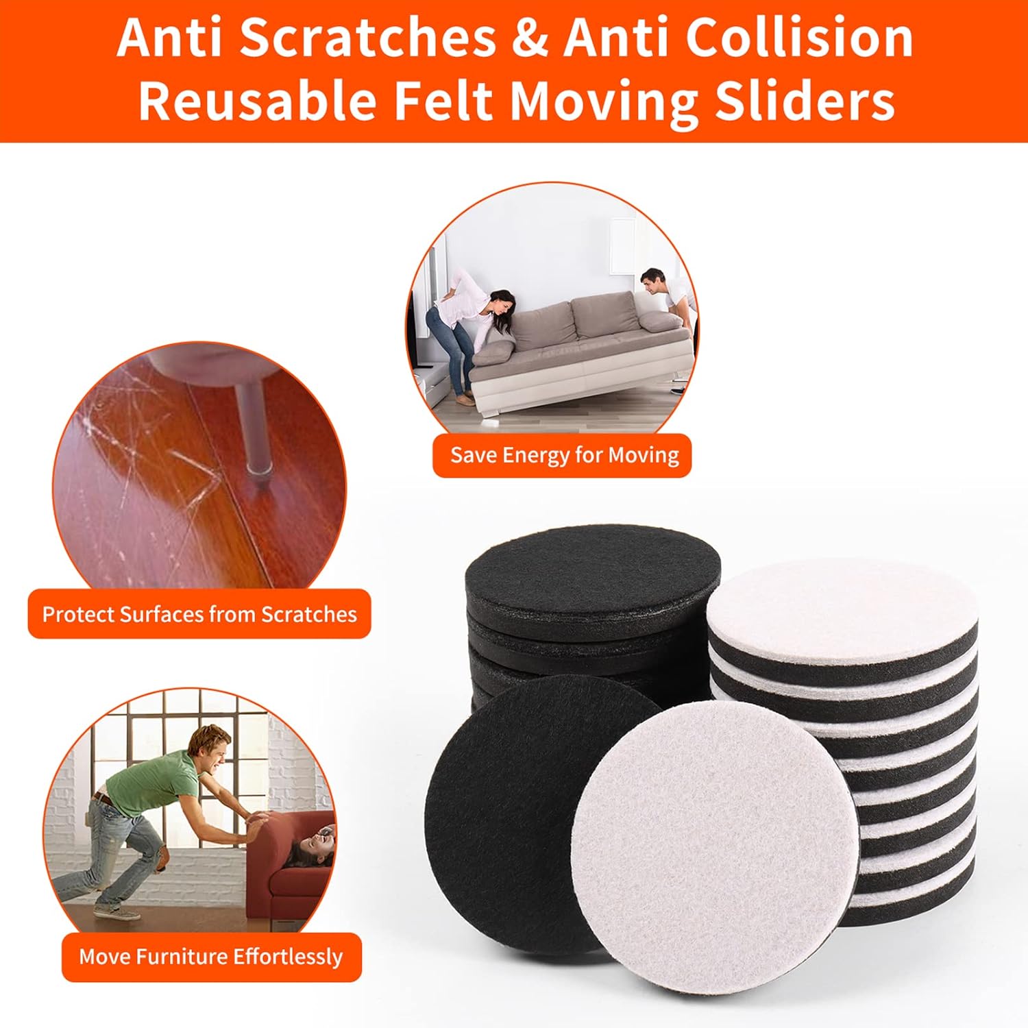 - ❤【Protect All Hard Floors from Scratches】- Everyday use and movement of furniture can be damaging your hard floors surfaces. Felt furniture moving pads protect all hardwood, ceramic tile and linoleum floors from scuffs.