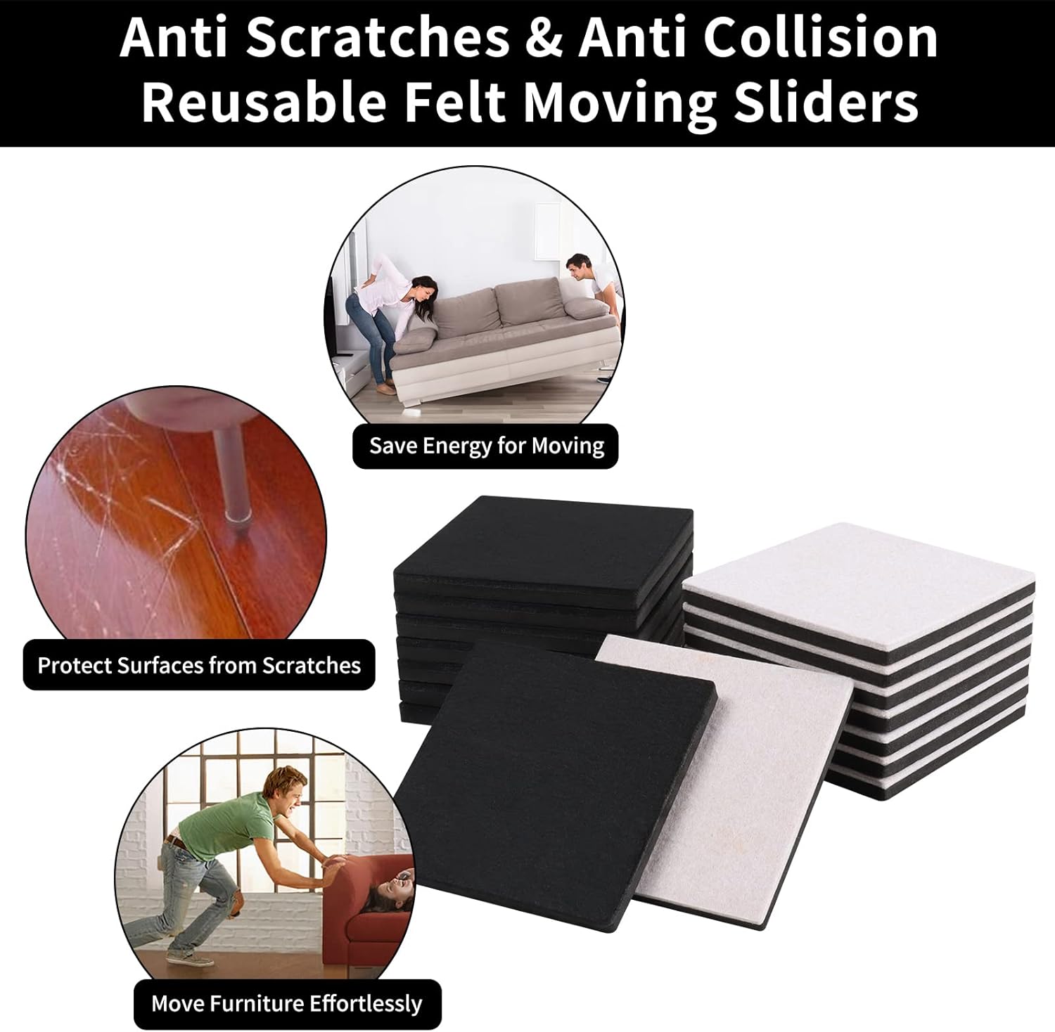 - ❤【Widely Use of Various Furniture】- Heavy duty 5 inch square felt furniture movers sliders Ideal for any heavy duty for Couch / Refrigerator /Tables /Cabinet /Sofas /Beds /Dressers / Recliners, or much more heavy appliances.