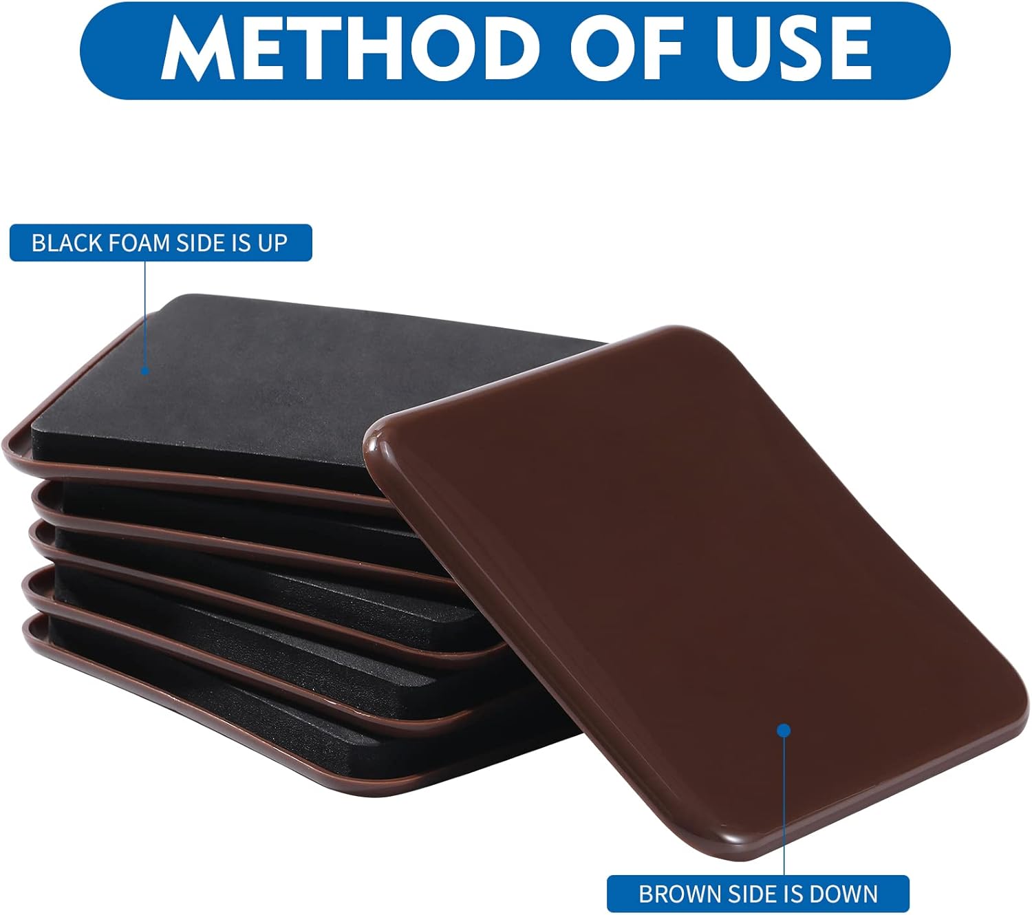 - 【REUSABLE】----When your furniture is too big and heavy to move, just put the moving slider under the furniture, it can move easily and protect your carpet from damage. The top durable black EVA grip pad must face up and is reusable.