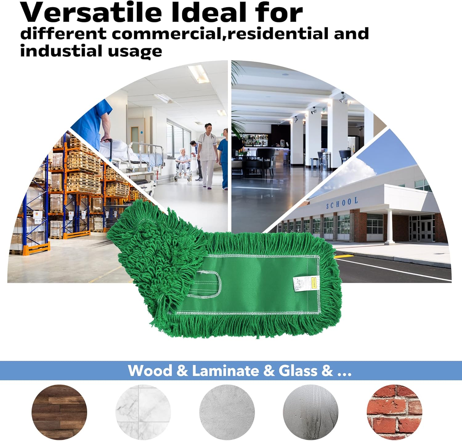 - Cotton refills mop pad is ideal for industrial class floor cleaning & Commercial & Residential large area , perfect for all types of surface areas including office floors, shopping mall floor ,hospital floor ,restaurant floors, garages, warehouses, hard wooden floor , Laminate ,marble floors, tile floors, cement floors, ect