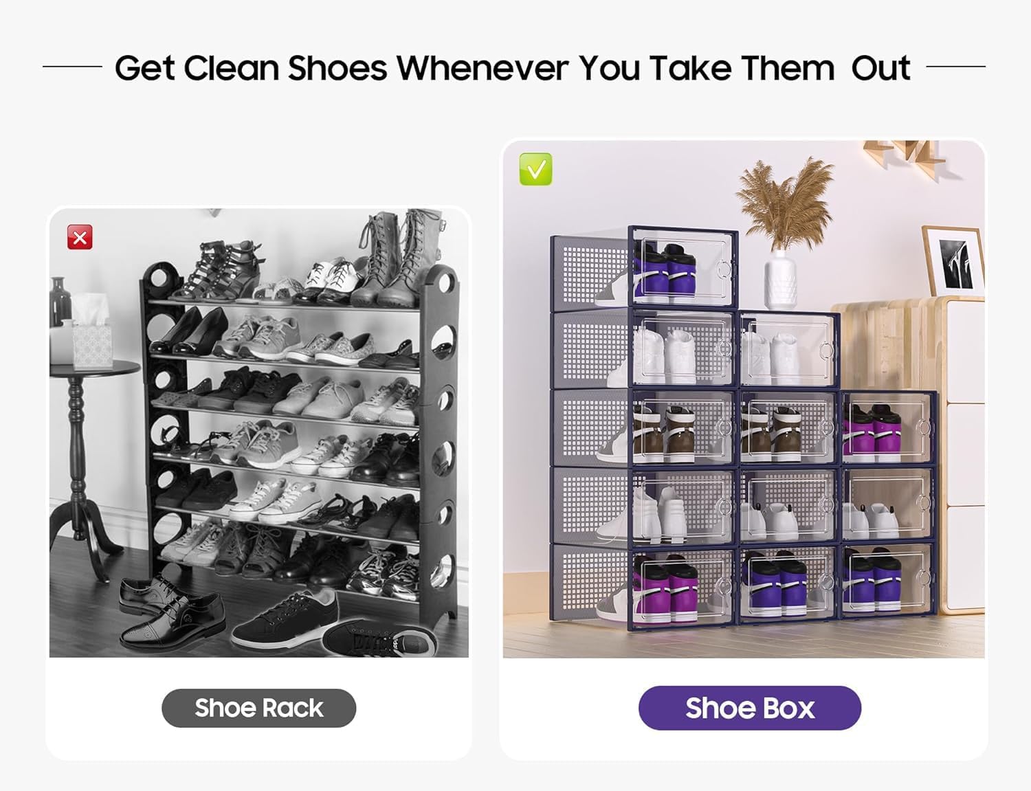 - Multi-Layer Stacking Design: Upgraded stacking design, just a few seconds can stack the shoe storage boxes