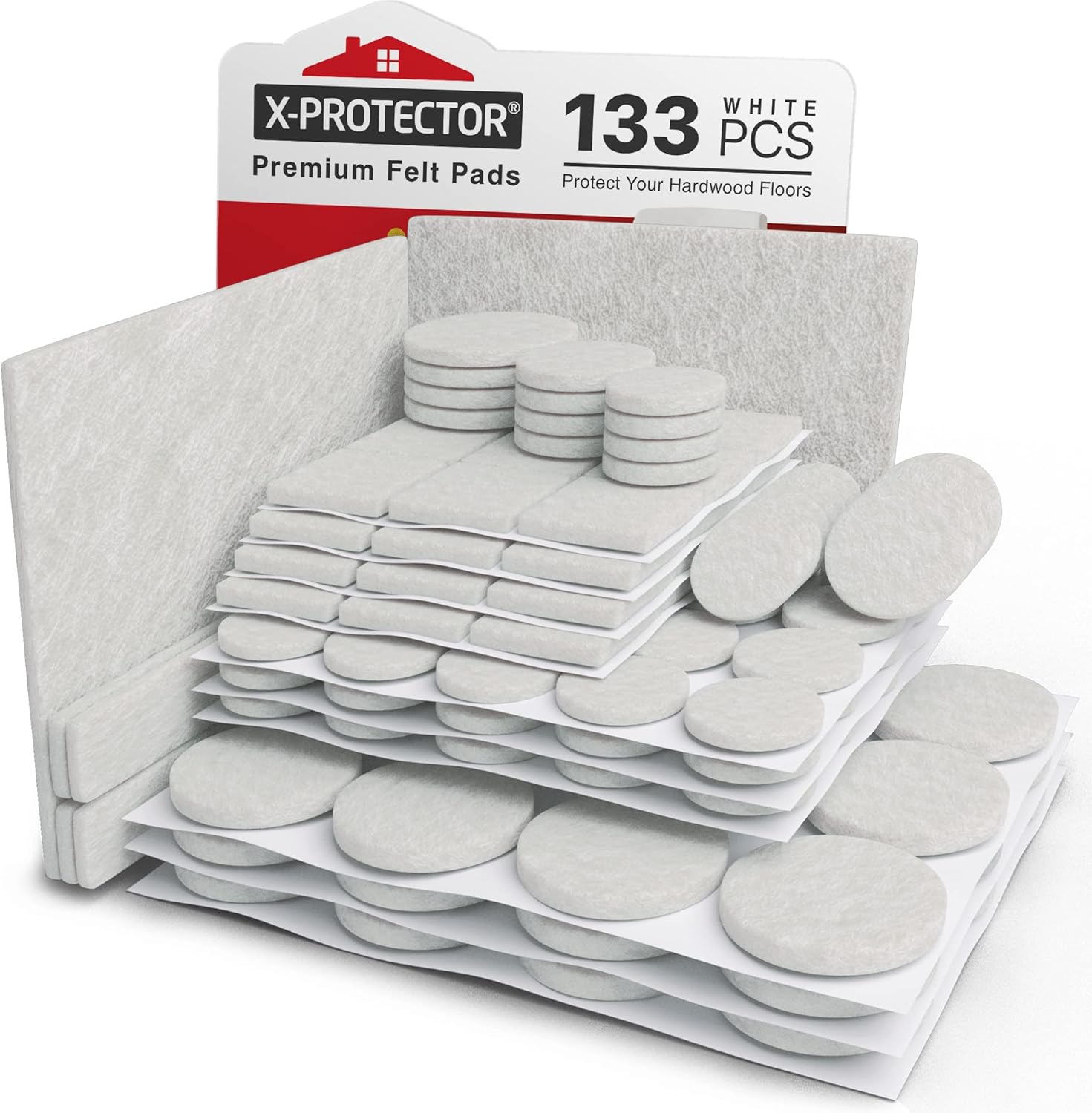 Felt Furniture Pads X-PROTECTOR 133 PCS - Premium Furniture Pads for Hardwood Floors - White Felt Pads for Furniture Feet - The Best Chair Leg Floor Protectors - Protect Your Hard Floors!