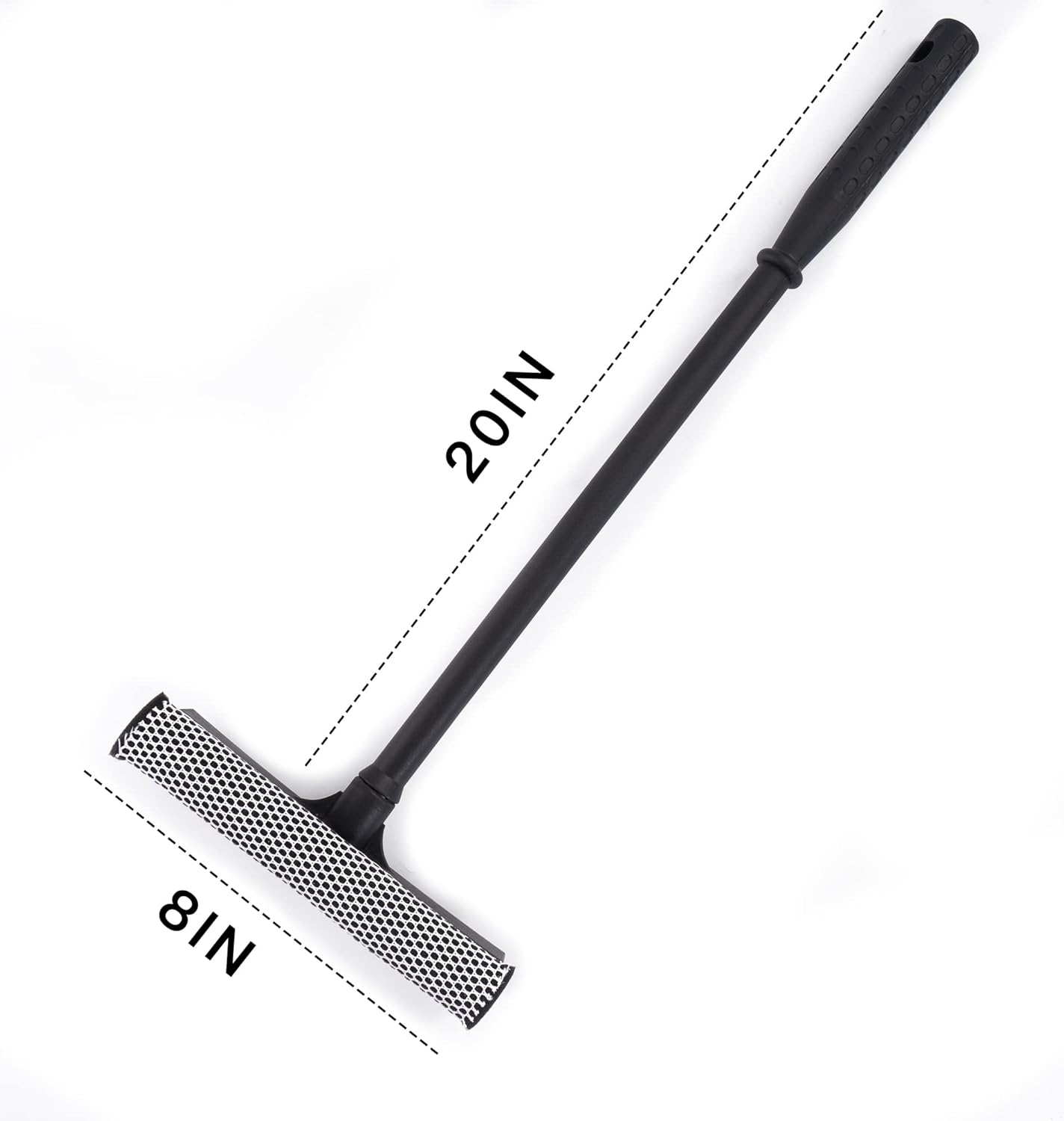 - Easy to Use: It Is 2 In 1 Function Window Squeegee. Window Squeegee Delivers Scrubbing Power For Tough Residue. 8in Soft Rubber Squeegee On Opposite Side Wipes Away Excess Suds And Water. The 20in Polypropylene Handle Provides A Long Reach And A Comfortable Grip