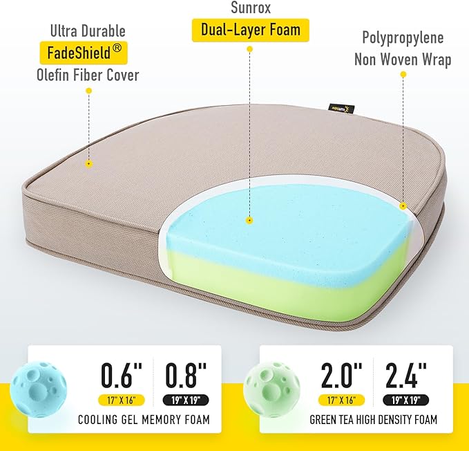- 【FadeShield - UV Fade Resistant】FadeShield Proprietary Polyolefin are dependable indoor/outdoor performance fabrics, they are infused with antimiсrоbial silver Ion technology and can withstand 5 years of UV fade resistance, solution-dyed to make sure that each color is deeply ingrained in every fiber for continued vibrancy, even after heavy use. We recommend bringing it indoors when it rains or when not in use to preserve its lifespan and keep it looking beautiful.
