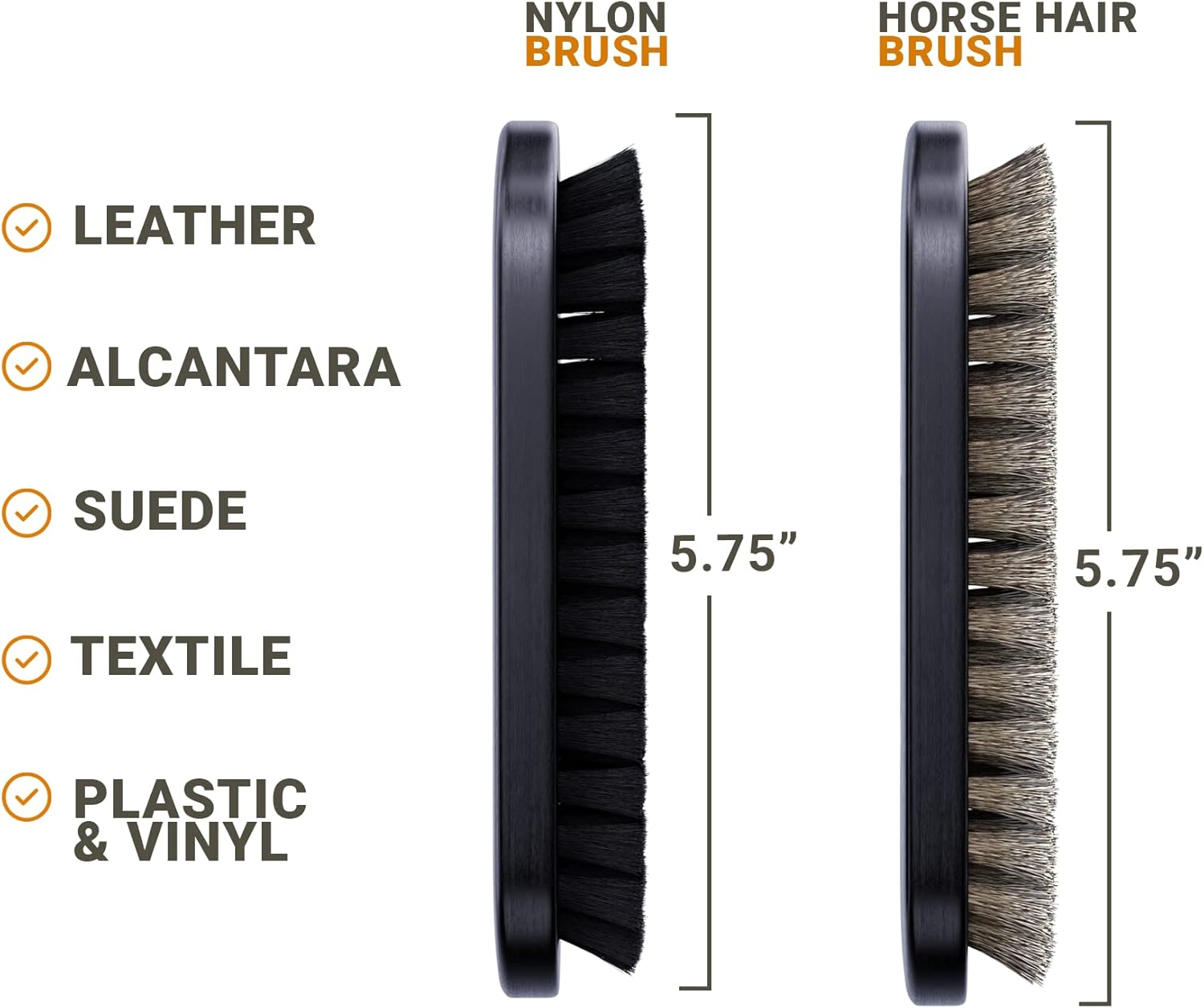 - Premium Material: Genuine horsehair brush for leather cleaning; soft yet effective bristles gently remove dirt without scratching delicate surfaces; perfect for car upholstery, furniture, and alcantara surfaces. Horse hair brush plus textile brush.