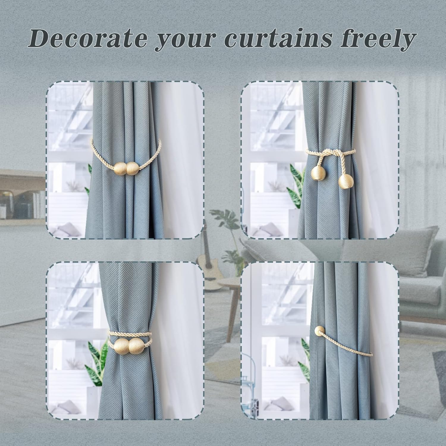 - [Upgrade Powerful Magnetic] Our magnetic curtain tiebacks magnets use high-end new imported nickel-plated magnets, with strong corrosion resistance and durability, more magnetic than ordinary magnetic curtain tiebacks, and do not rust and not lose color. The rope of curtain tie adopts upgrade thickened solid polyester yarn, which is not only durable, but also not easy to wear or pilling.