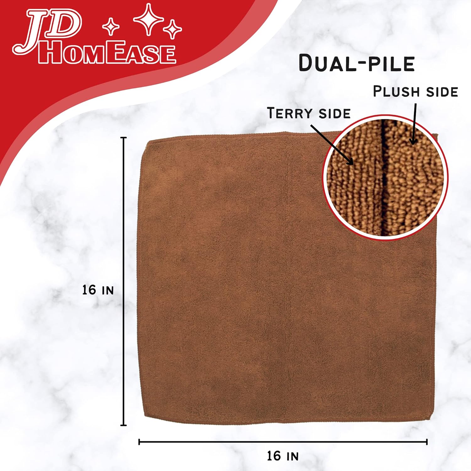 Microfiber Cleaning Cloths,24 Pack, 16"x16", All-Purpose, Softer, Highly Absorbent, Lint-Free, Reusable, Washable Pro Towels, Brown, for House, Kitchen, Bathroom, Car, Office