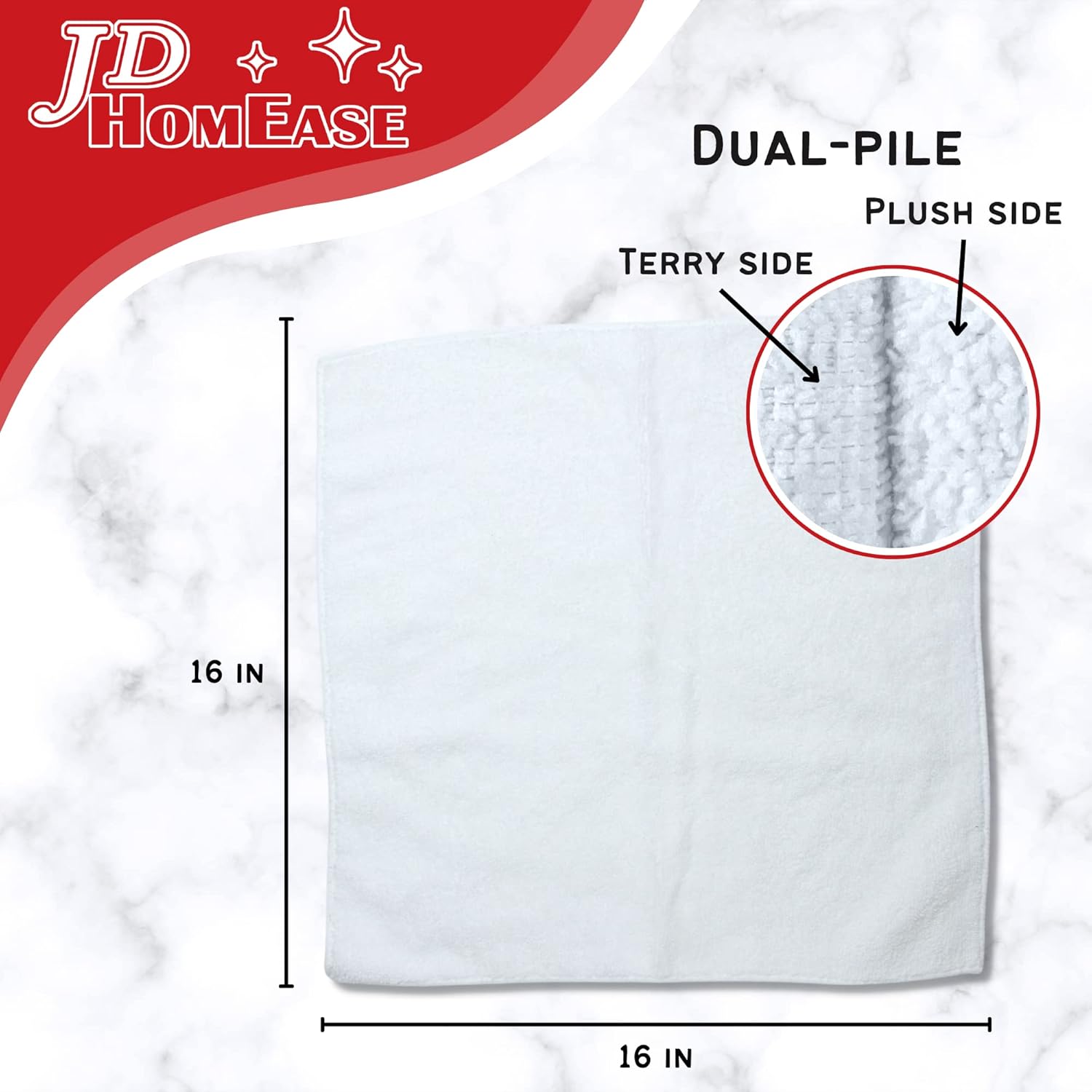 Microfiber Cleaning Cloths,48 Pack, 16"x16", All-Purpose, Softer, Highly Absorbent, Lint-Free, Reusable, Washable Pro Towels, White, for House, Kitchen, Bathroom, Car, Office