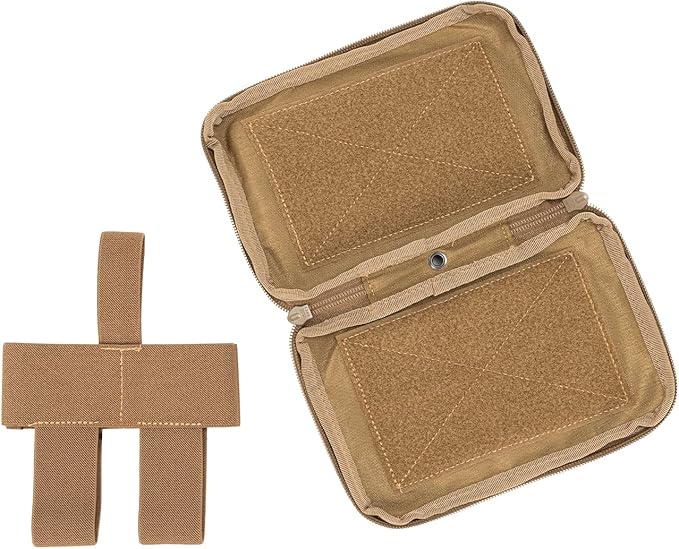 - The bottom of the pouch has two elastic loops for securing the tourniquet. A removable elastic tray with a convenient handle for securing small, loose medical items. The interior of the pouch has soft velcro loop panel on the front and back to allow you to secure small gear.