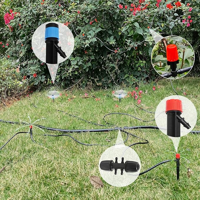 - 3 Kinds of Sprayers: We include 3 kinds of sprayers to adjust different water flow you need. We includes 10 pcs drip emitter stream, 10 pcs drip emitter vortex, 20 pcs misting nozzle.