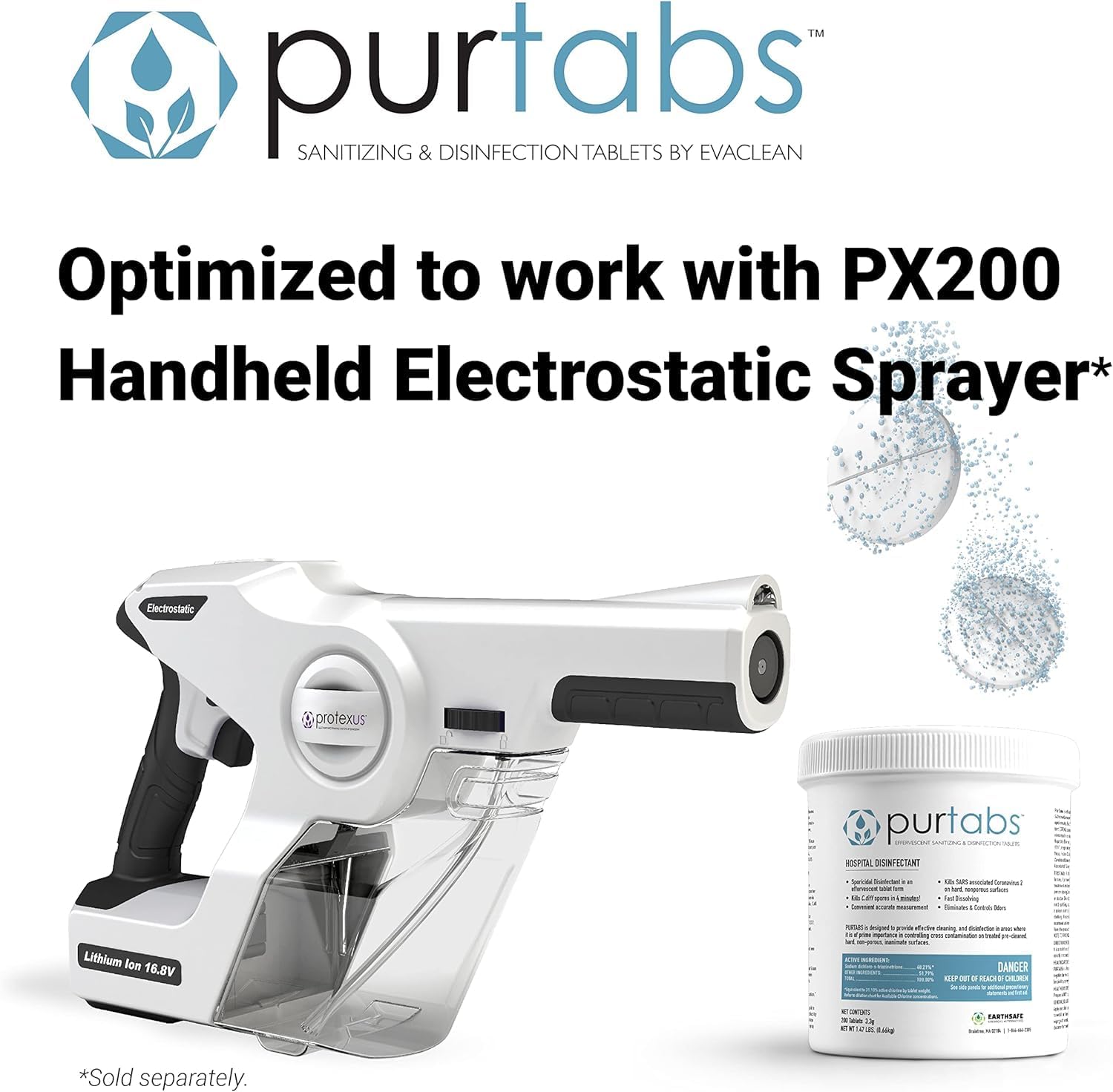 3.3 gram Sporicidal NaDCC Tablet Disinfectant - Multipurpose, Concentrated Dissolving Tabs for Bulk Solution, Use with Protexus Handheld Electrostatic Sprayer
