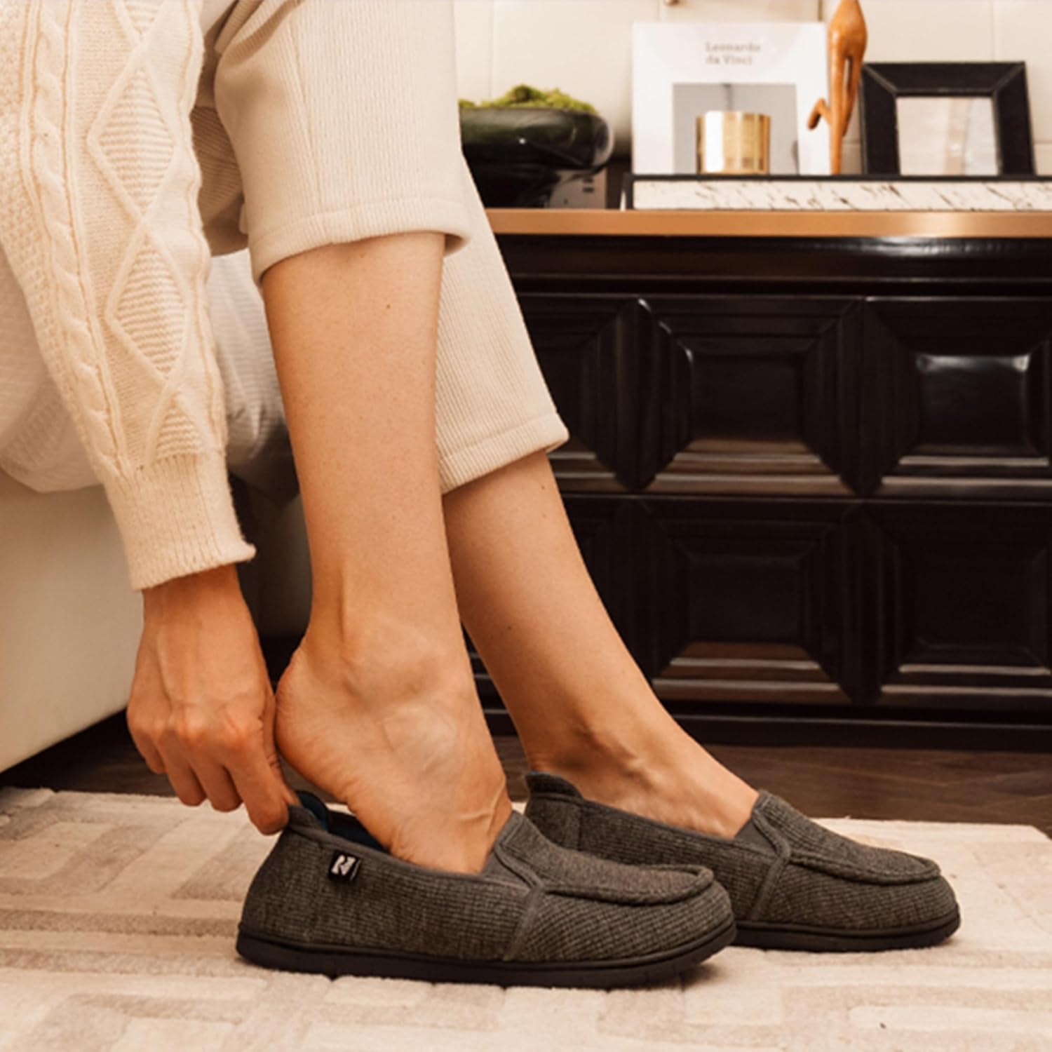 • Lightweight rubber soles lets you move quietly and effortlessly around the house; sturdy bottoms allow you to step outside quickly without switching shoes. Wear them to grab the mail, walk to the car, take out trash, etc.