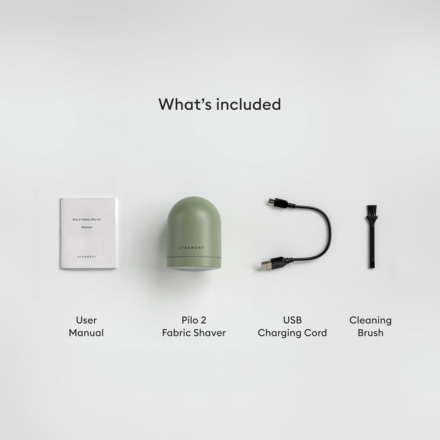 Steamery Fabric Shaver Pilo 2, Removes Lint and Pilling from Clothes and Textiles, Rechargeable Lint Remover with USB, Green