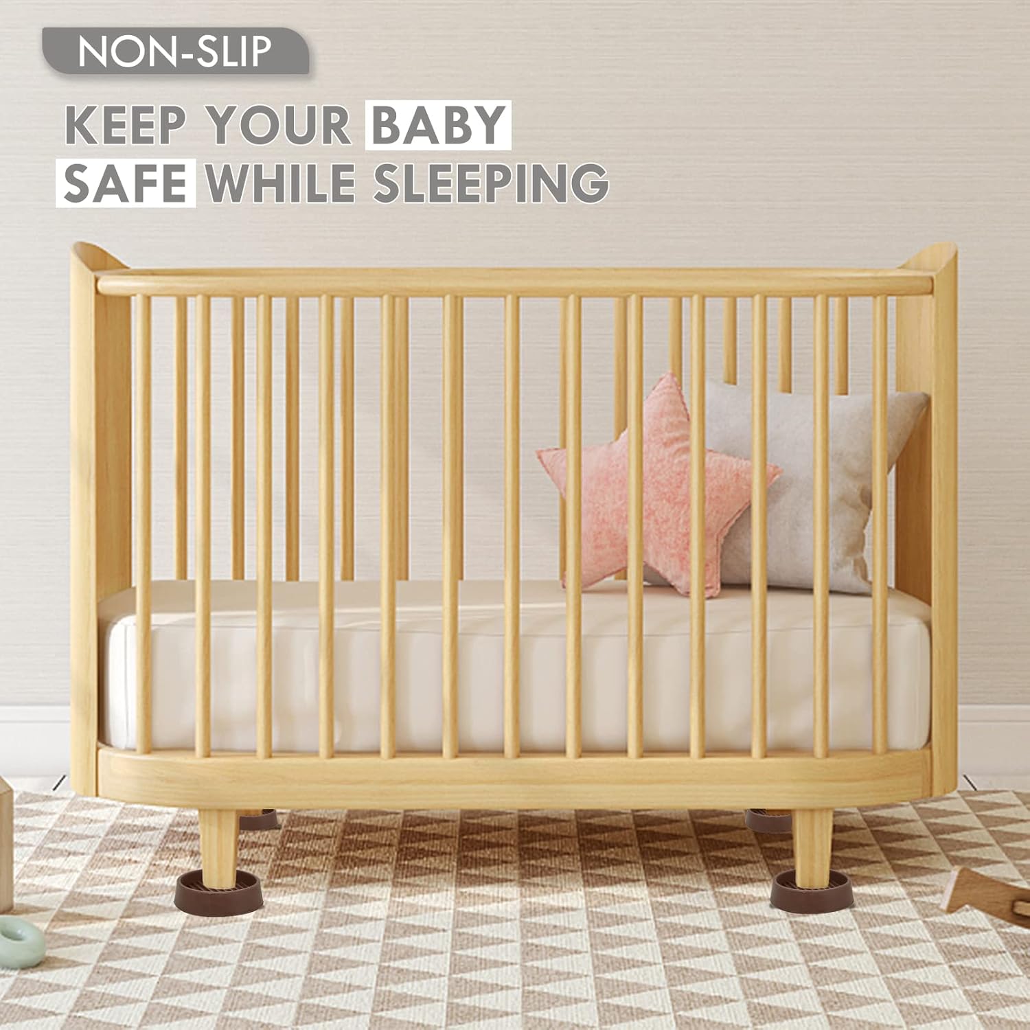 - EXTRA PROTECTIVE and DURABLE RUBBER - The brown round rubber caster cup can withstand the weight of heavy furniture (such as sofas, beds, wardrobes, pianos, and porcelain cabinets) pressed on surfaces such as laminate and vinyl.