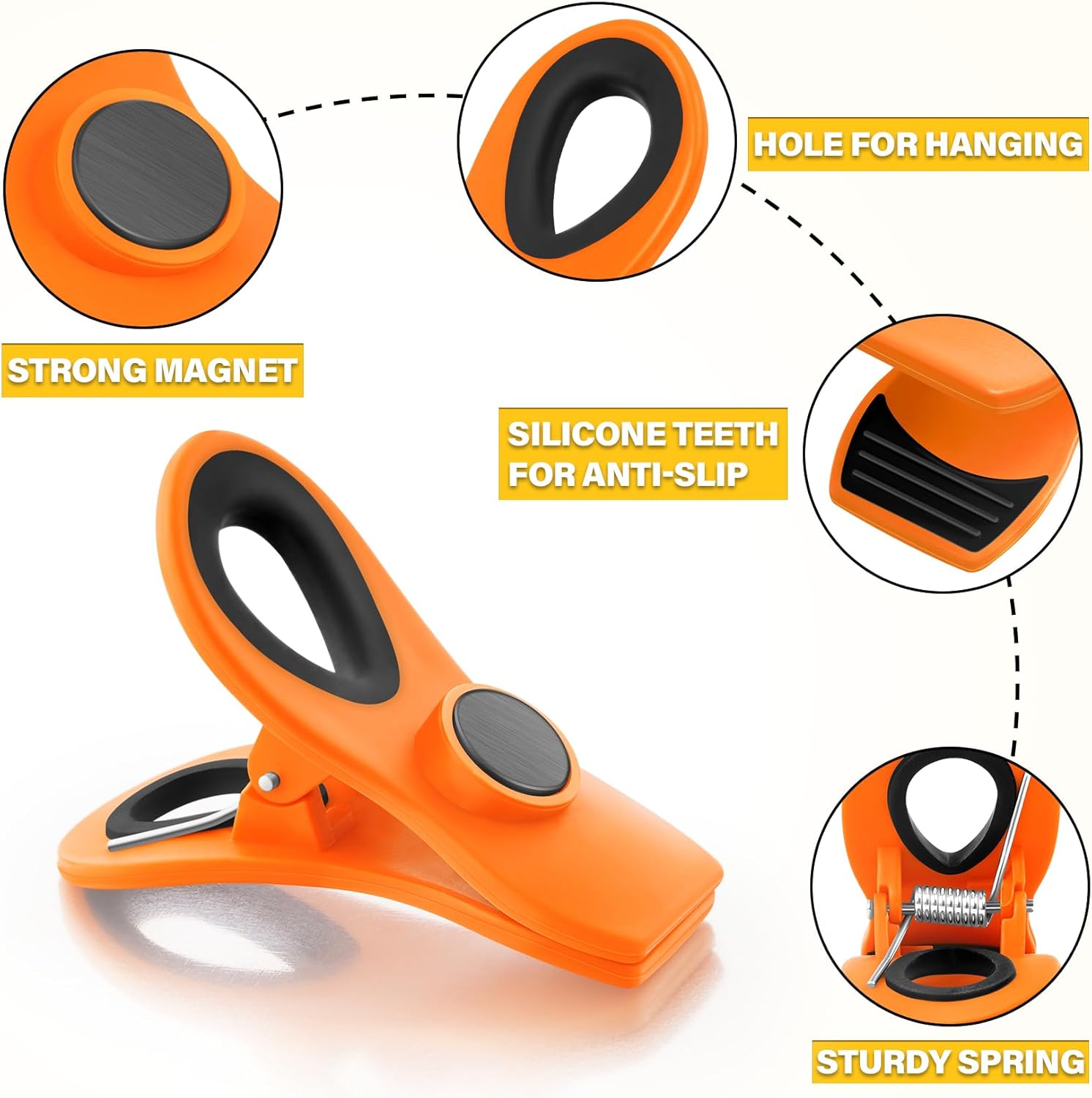 - Magnetic Chip Clips- Our clips are equipped with magnets on the back, making it easy to attach them to the fridge. Chip bag clips are not only useful for sealing chip bags but also convenient for holding notes, photos, artwork, receipts, and other small items.
