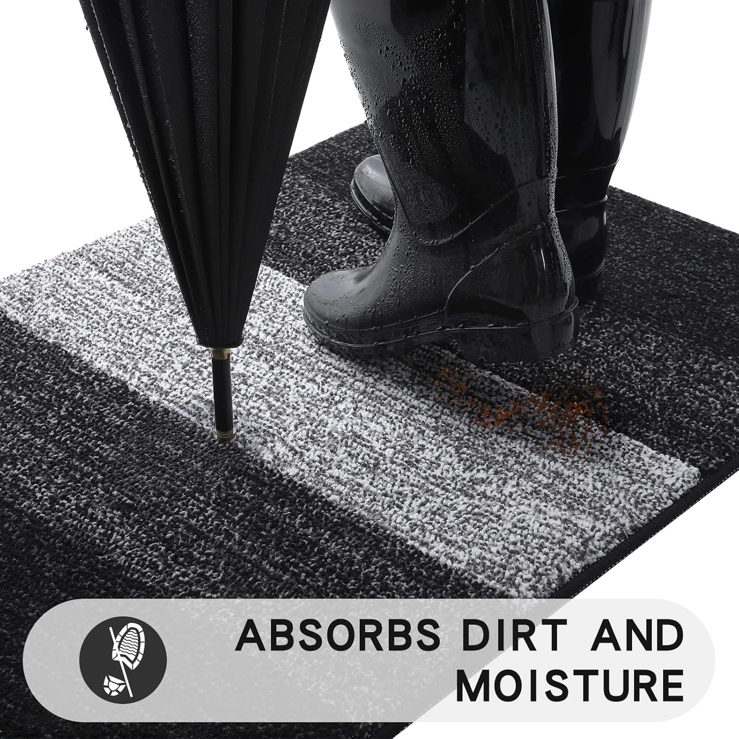 - ABSORBS MOISTURE AND DIRT:Kitinjoy indoor doormats effectively trap water, mud, and dirt. Countless polyester fibers keep indoor areas clean, and dry. Even rain, snow, or muddy weather can protect the floor from spills or stains.