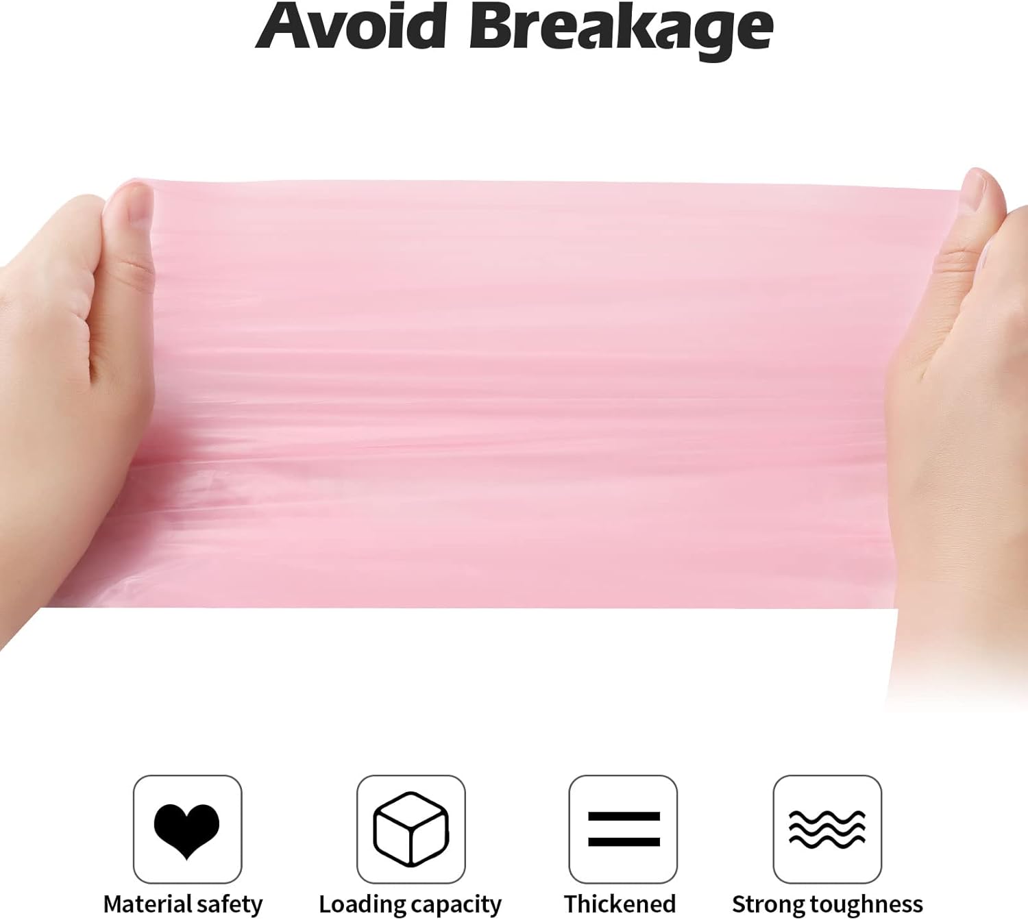 - 【Built-in Handles】:There are handles on both sides of the pink trash bag,Make the trash collection more convenient and easier, keep your hands clean,easy to lift, tie and carry.