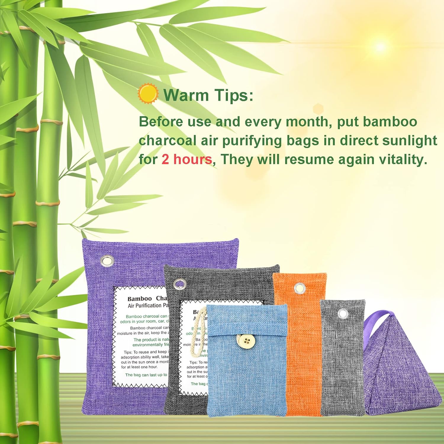 - Reusable: Our charcoal bags odor absorber feature an anionic charge and porous structure that allows them to effectively eliminate odors rather than merely masking them. To maintain optimal adsorption capacity, we recommend exposing the bamboo charcoal air purifying bags to sunlight for 1-2 hours every month (Before use), which will help charcoal odor absorber to remove any absorbed moisture and odors.