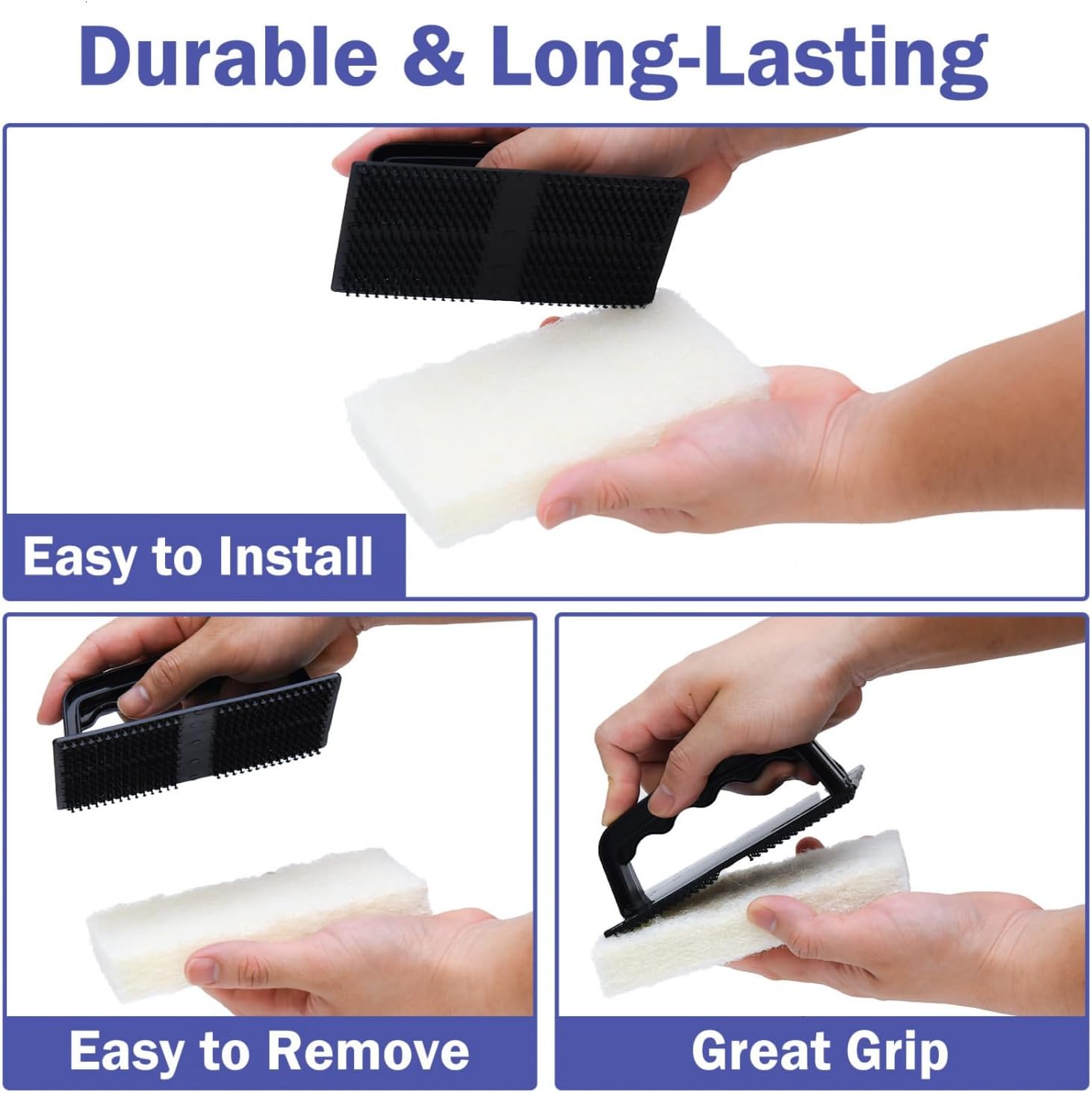 YoleShy Handled Scrubber Set, Non-Scratch Bathroom Scrubbing Pads, Bathtub Scrubber with Handle, Reusable Cleaning Sponge for Shower Tile, Bathtube, Sink, Spas Tubs & Swimming Pool Step