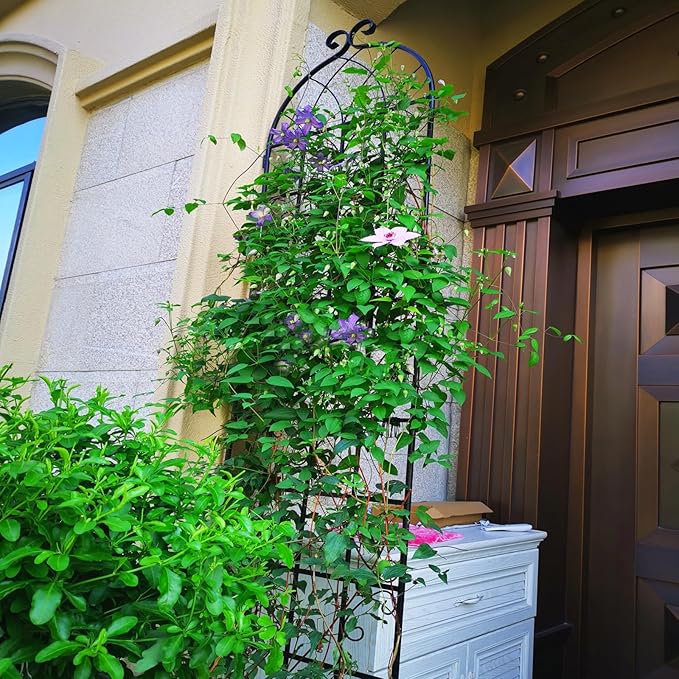 - PLANTS SUPPORTING TRELLIS: This metal garden trellis is perfect for supporting all kinds of flowering trellis plants, wall-climbing vines. It allows them to grow naturally up towards the top.