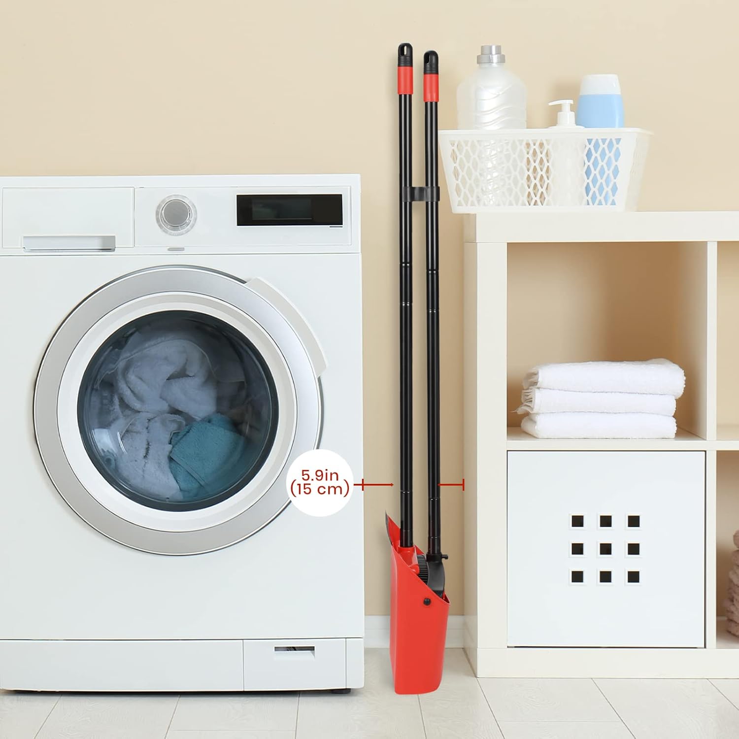- Space-Saving Storage: After use, the broom and dustpan can be easily snapped together for compact storage. The integrated hanging loop on the handle allows for convenient hanging when not in use, saving valuable storage space.