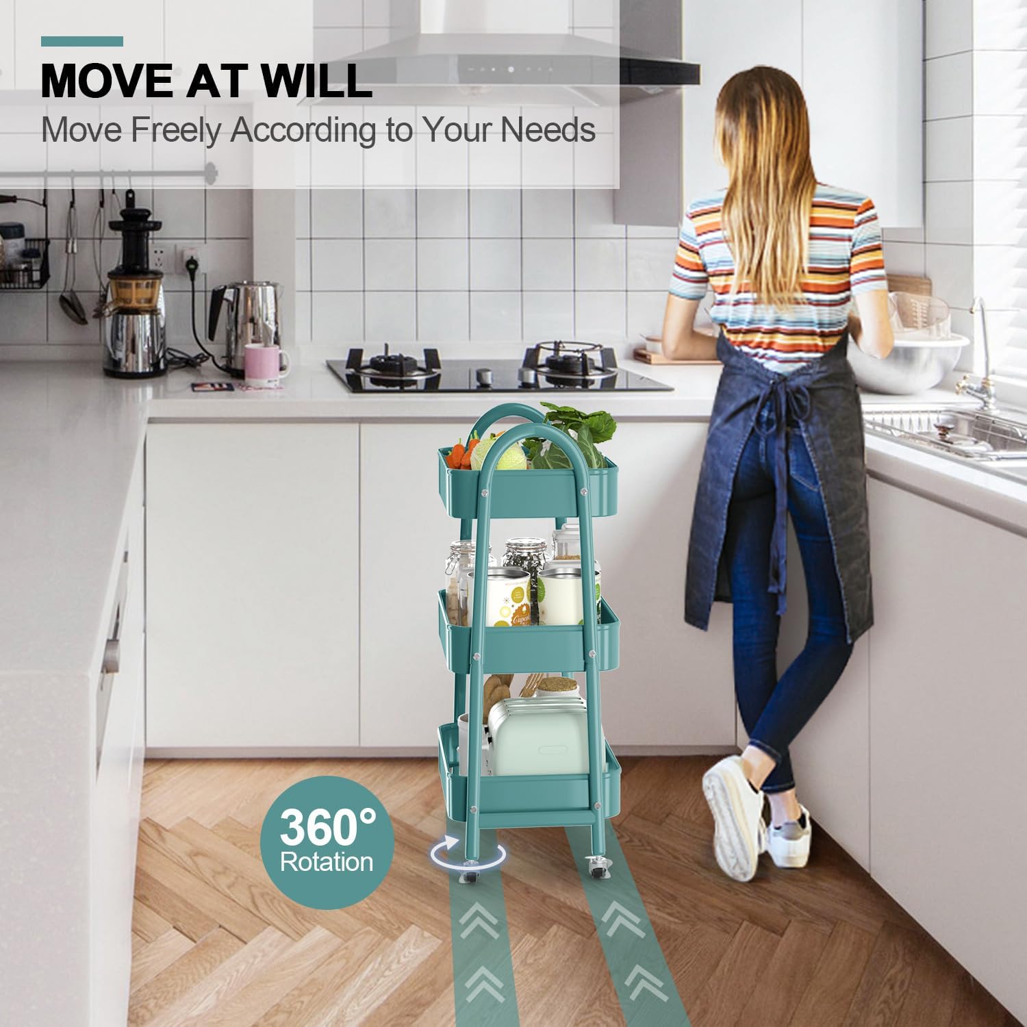 - Move or Lock At Your Will: Our rolling cart is equipped with 4 360Β° rotating wheels, easy to carry around and change place at will, two of wheels are lockable, provide stability. The modern curved handles design makes it more convenient to push and pull around as needed.