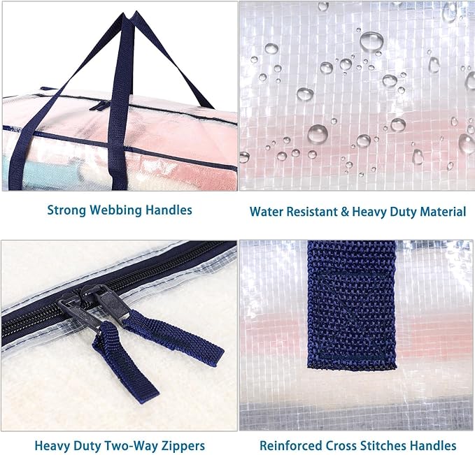- Clear Tag Pocket & Wide Opening β Say goodbye to the frustration of searching for your belongings. Make a custom label and insert it into the clear tag pocket for easy identification of items like blankets, bedding, pillows, and clothes. Remember to use this labeling feature for organizing college dorm room essentials, moving to a new home, or storing items in the garage. The bag is equipped with dual extended zippers, creating a wide opening that allows for effortless access to stored items.