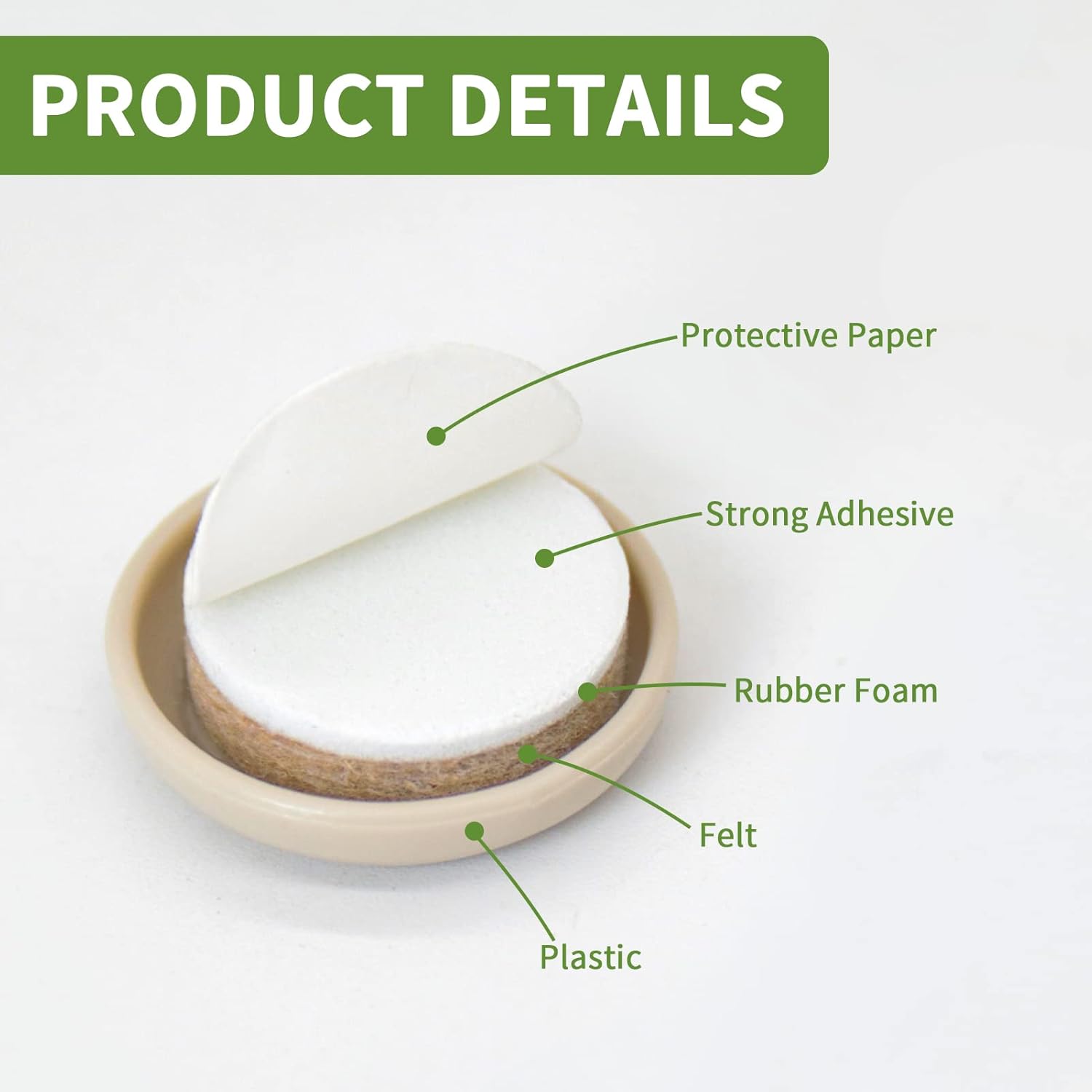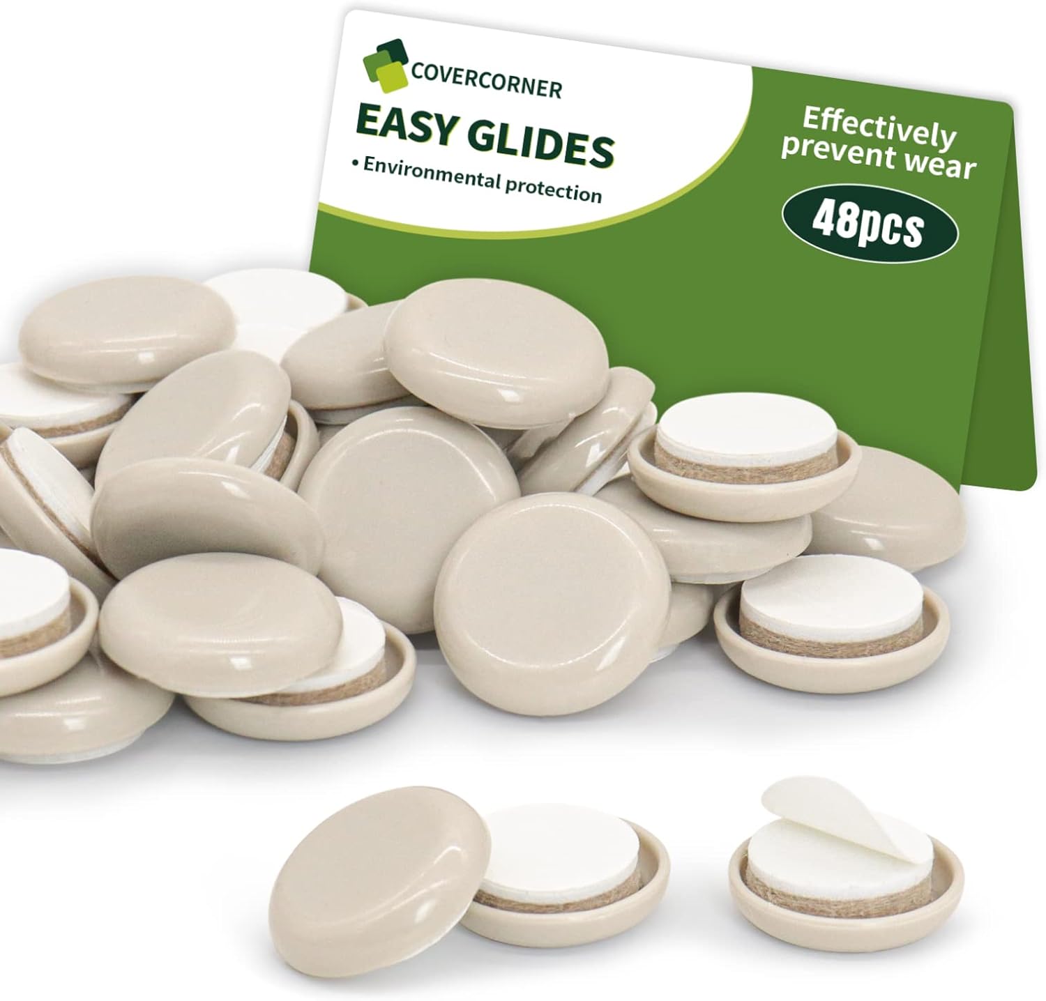 - 48 pcs 1" Plastic Chair Glides are made of PREMIUM EXTRA STRONG FELT, DURABLE FOAM, and SMOOTH PLASTIC - our furniture moving sliders WILL NOT Wear Out & Provide Solid Protection!