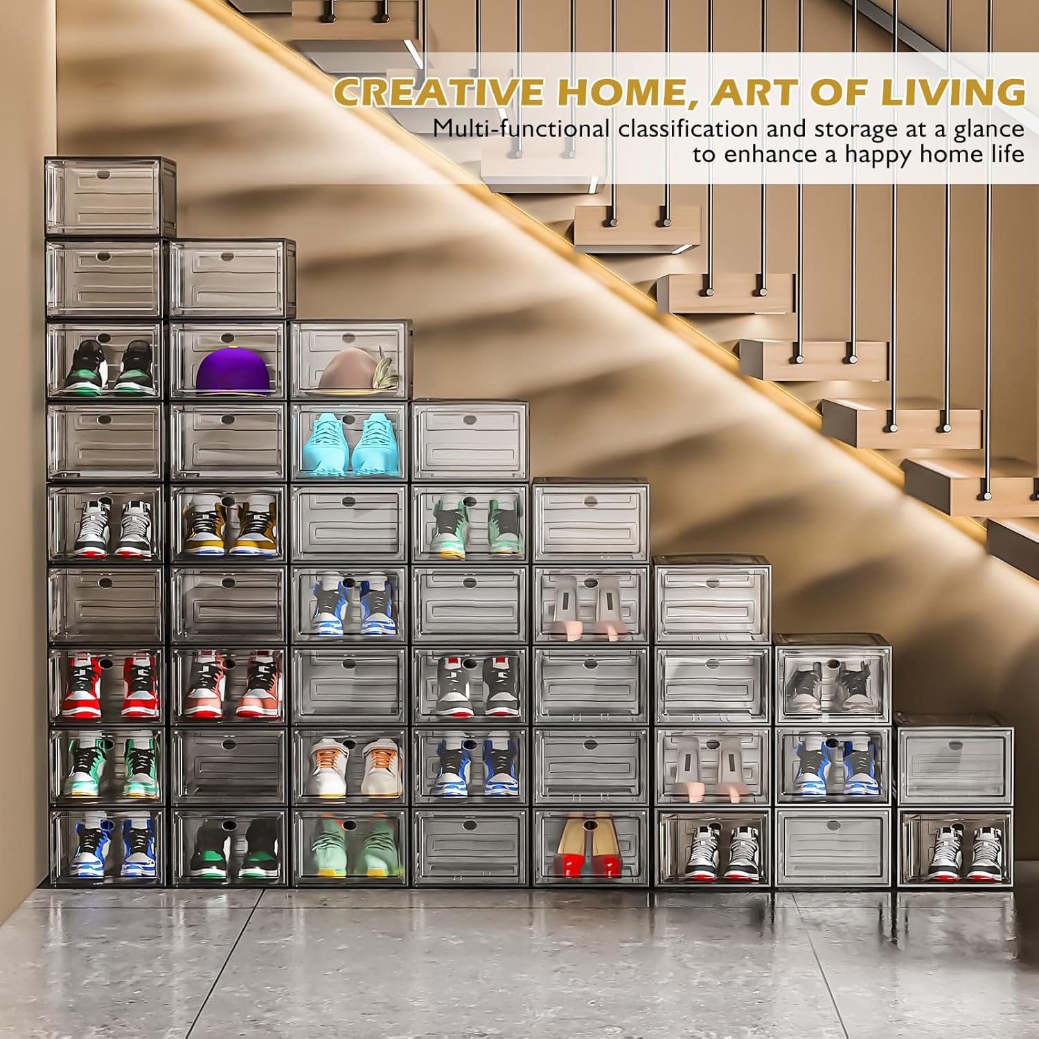 - Worry about assemble? - Each employee involved in assembling this clear shoe box thinks it is so easy. By watching the installation notes, anybody can set up this shoe box organizer with ease.