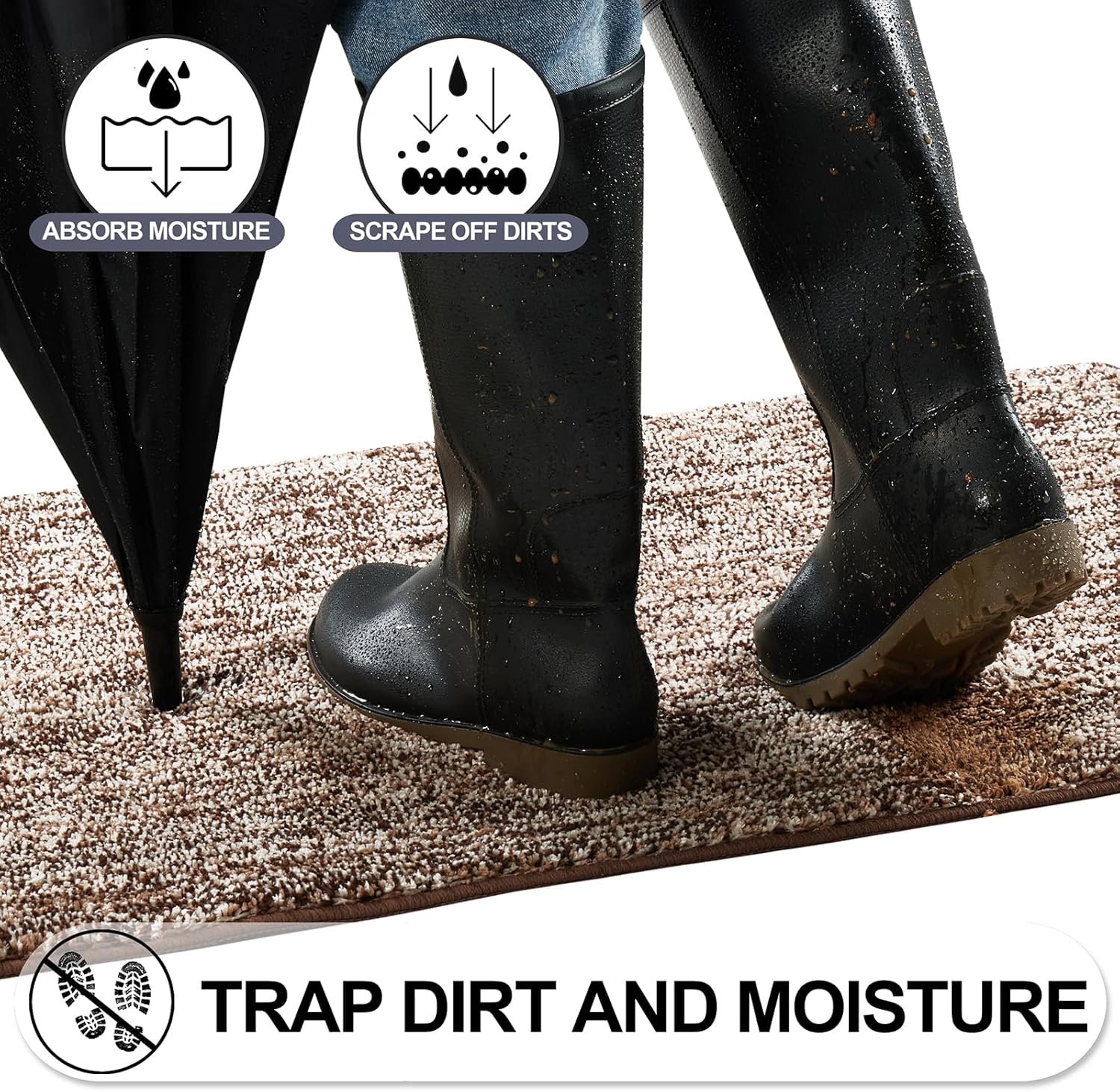 REFETONE Indoor Doormat, Front Door Mat 20"x32" Absorbent Rubber Backing Non Slip Door Mats, Washable Low-Profile Inside Floor Mat Door Rugs for Entryway, Resist Dirt Mud Mat for Dogs, Coffee/Brown
