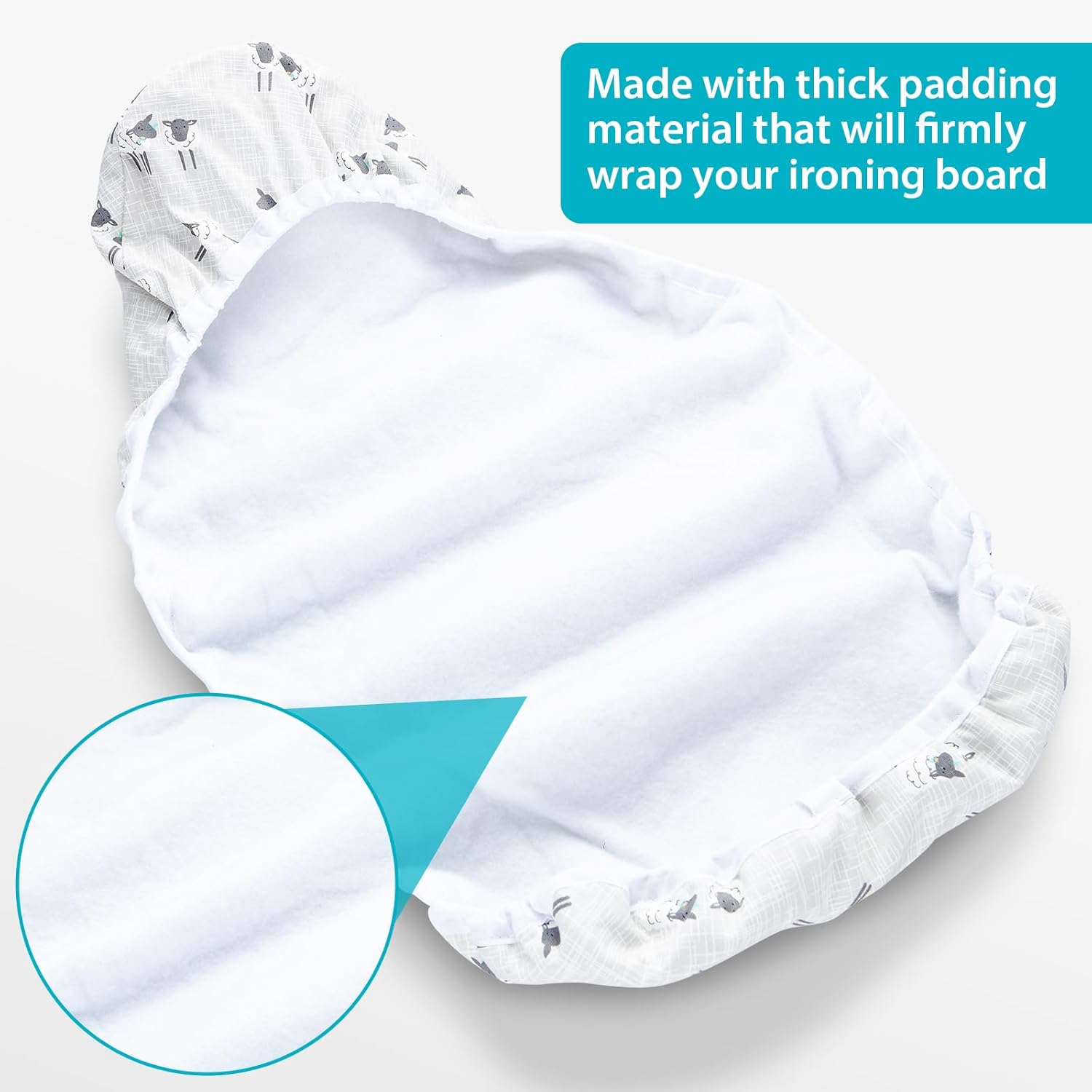 - EXTRA THICK MATERIAL FOR BETTER IRONING: This ironing board cover adopts natural breathable cotton with scorch resistant finish as cover. Using ultra thick stitched fibers, the thickness can reach 6mm. This synthetic fiber evenly radiate heat and steam, achieve high temperature ironing and safer