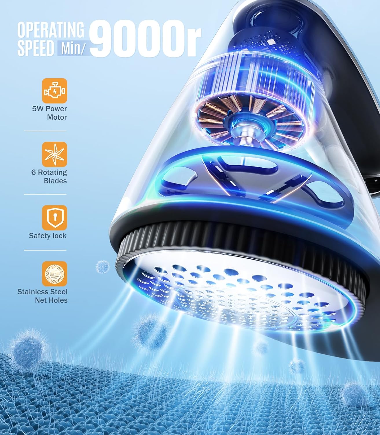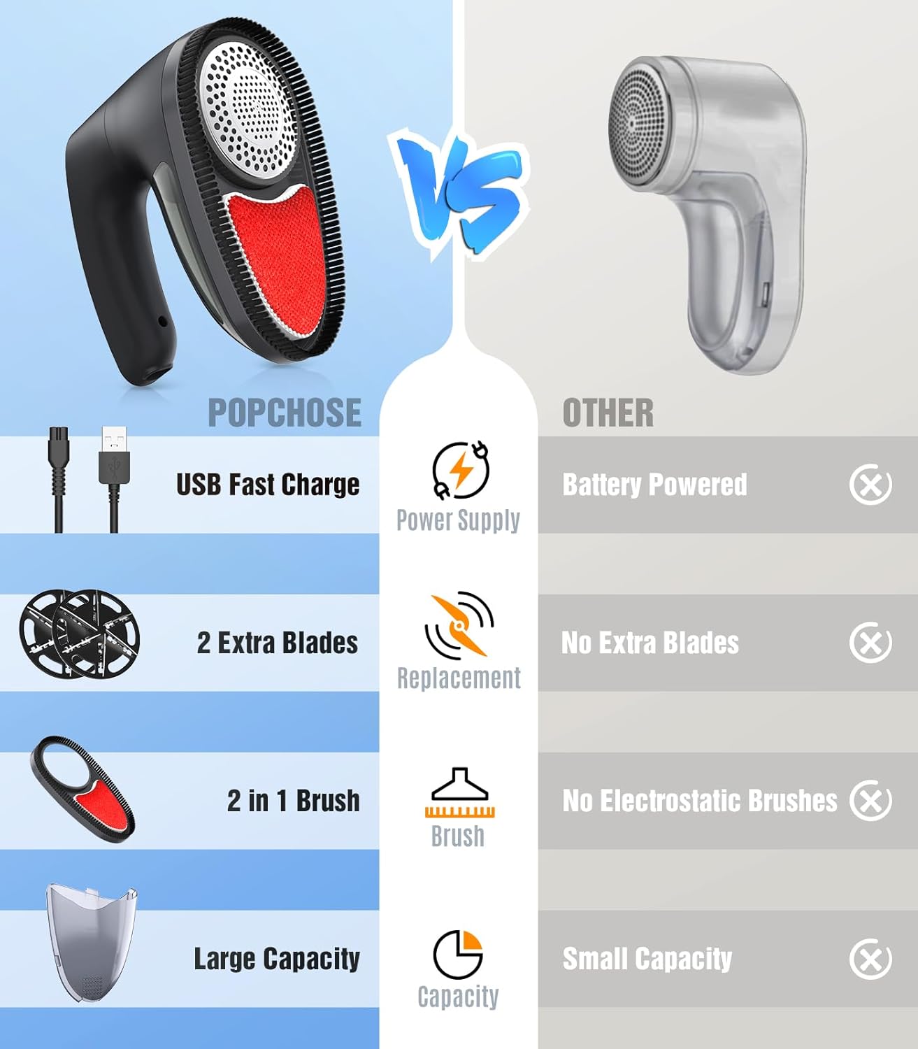 - Quick Results in Seconds: POPCHOSE electric fabric shaver feature 6-leaf blades and larger shaving head that instantly removes lint ball, pilling, fuzz from most fabrics. It is 60% more efficient than others with its 9,000 spin per minute