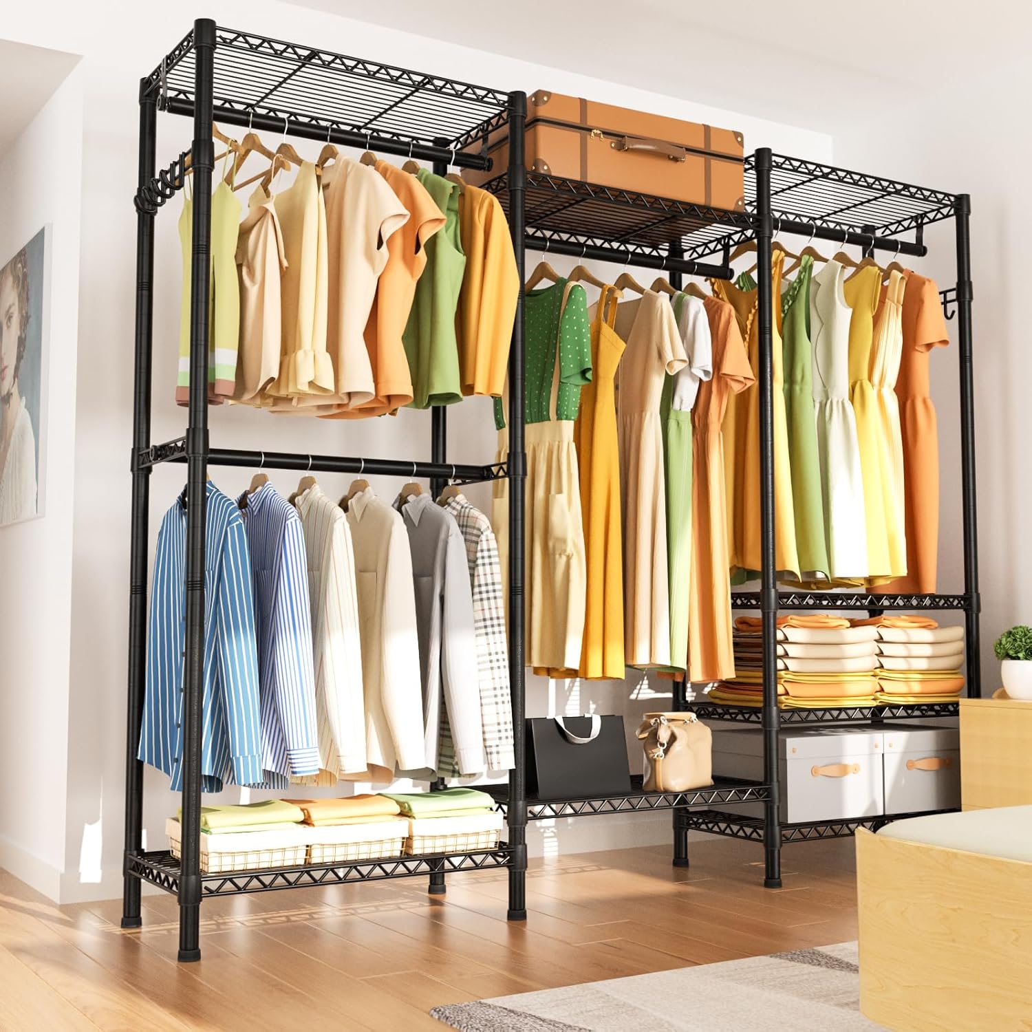 - Effortless Assembly & Dependable Design: Bid farewell to complex assembly processes. Our garment rack is designed for easy setup without the need for tools. The combination of user-friendly assembly and a large load capacity ensures a dependable storage solution that stands the test of time. Invest in a clothing storage system that effortlessly blends efficiency, durability, and style for an unparalleled storage experience