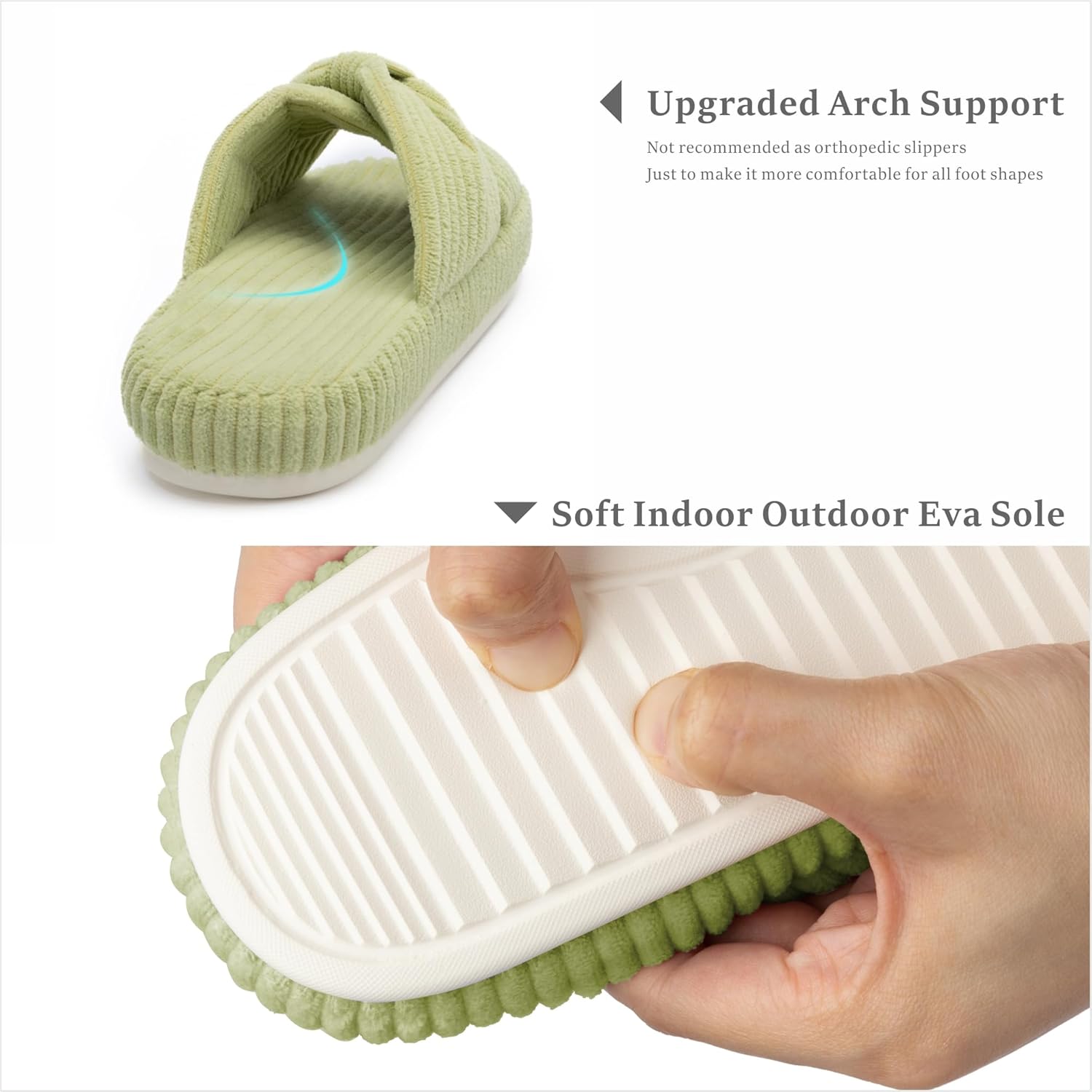 Chantomoo Slippers for Women Memory Foam House Bedroom Corduroy Bow Crossbands Slide Slipper Shoes Comfy Trendy Gift Slippers