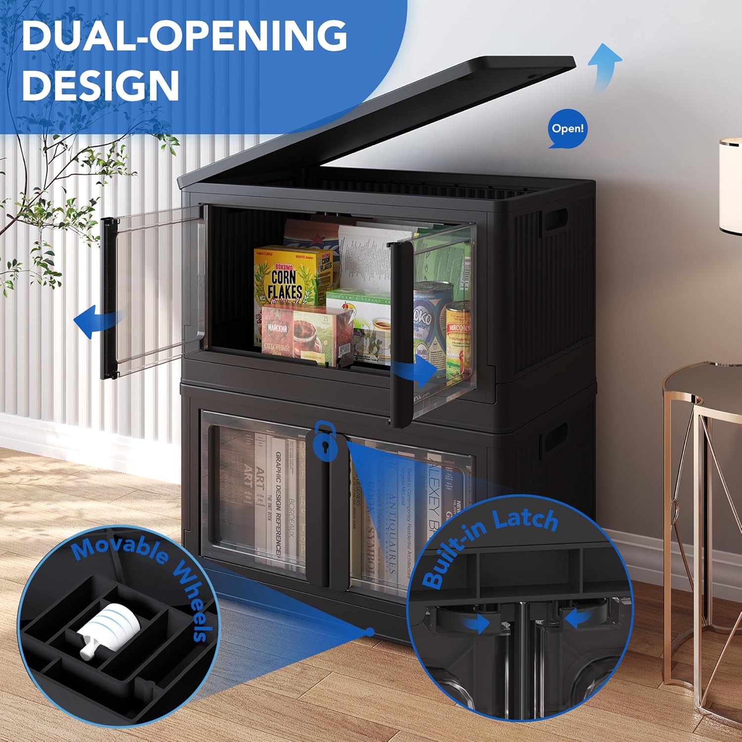 FLEXIMOUNTS 228 QT Stackable Storage Bins With Lids, Collapsible Plastic Storage Bins With Doors and Built-in Wheels For Home Dorm Closet Organizers and Storage, 3 Pack Cubes, Black