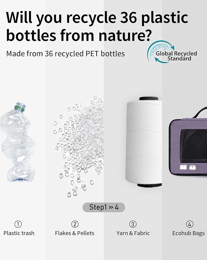 - 【Sustainable and guarantee】: ECOHUB travel packing cubes are made from at least 50% recycled materials, with fabric and lining crafted from 36 recycled PET plastic bottles. The lightweight fabric combined with YKK zippers and reinforced ripstop stitching, ensure durability for any adventure. If you have any concerns, reach out through your order. (Patent Pending)