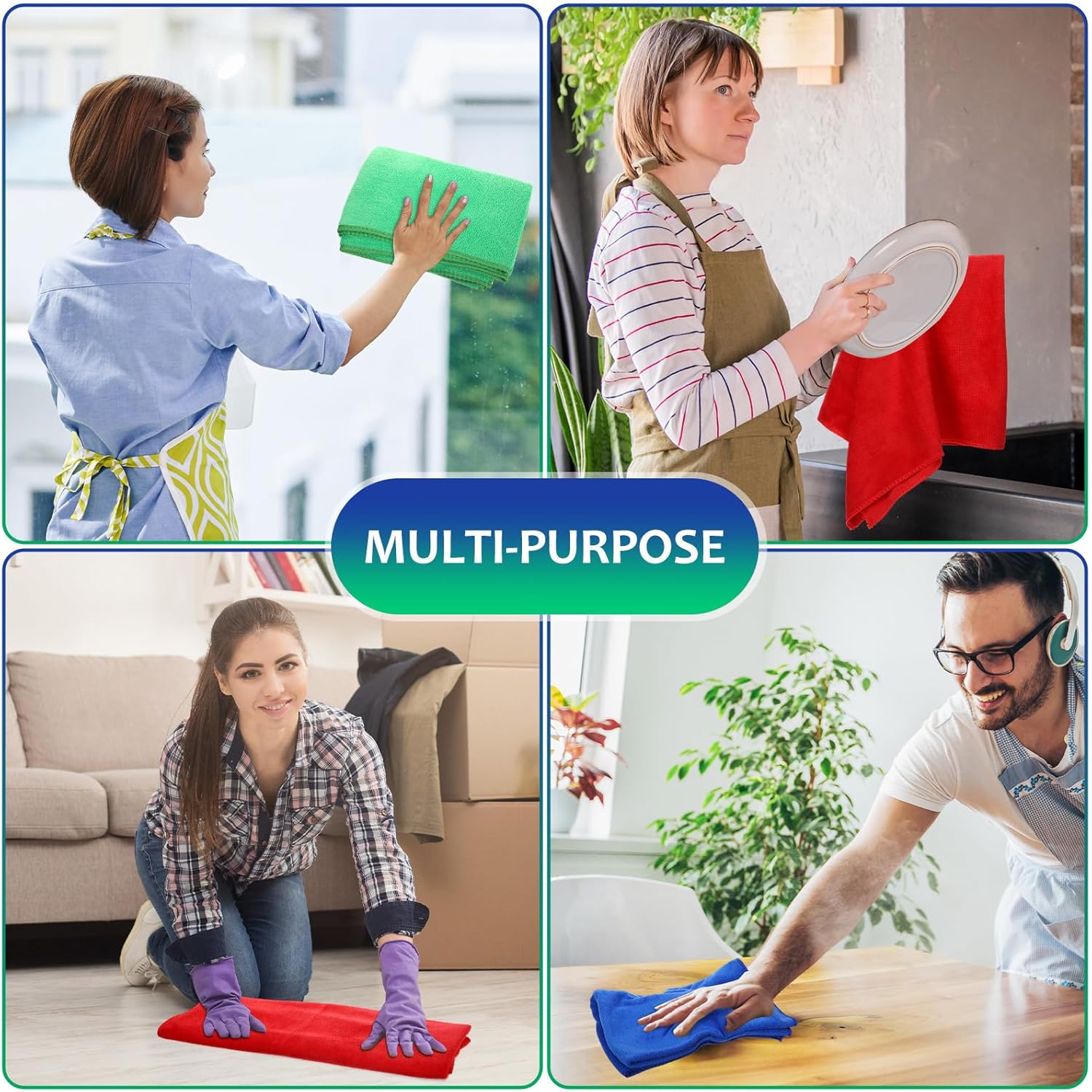 - Multiple Purposes: the microfiber cleaning towels can be regarded as nice wiping supplies for glass, windows, bathtub, mirrors, screens, kitchens, handrail, windowsills, counters, sinks, furniture, automobile and more