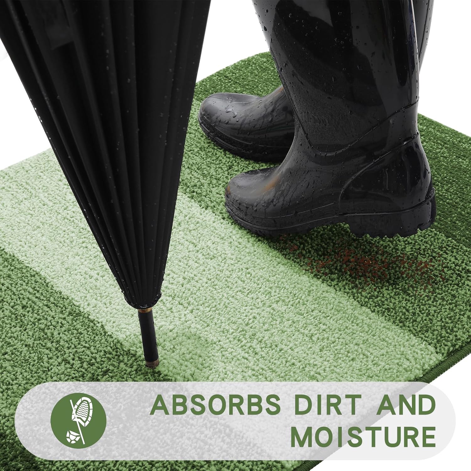Kitinjoy Indoor Outdoor Door Mat, 36x24 Non-Slip Absorbent Dirt Trapper, Low-Profile Washable Inside Entrance Front Floor Mat, Sturdy Soft Entry Doormats for Entryway, Green