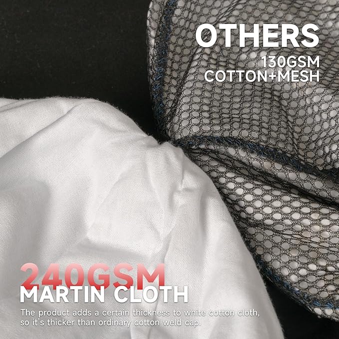 - HIGH QUALITY: It adopts 240GSM Martin cloth material and cotton cloth lining, making its thickness almost twice that of other ordinary welding caps and its shape more stereoscopic.