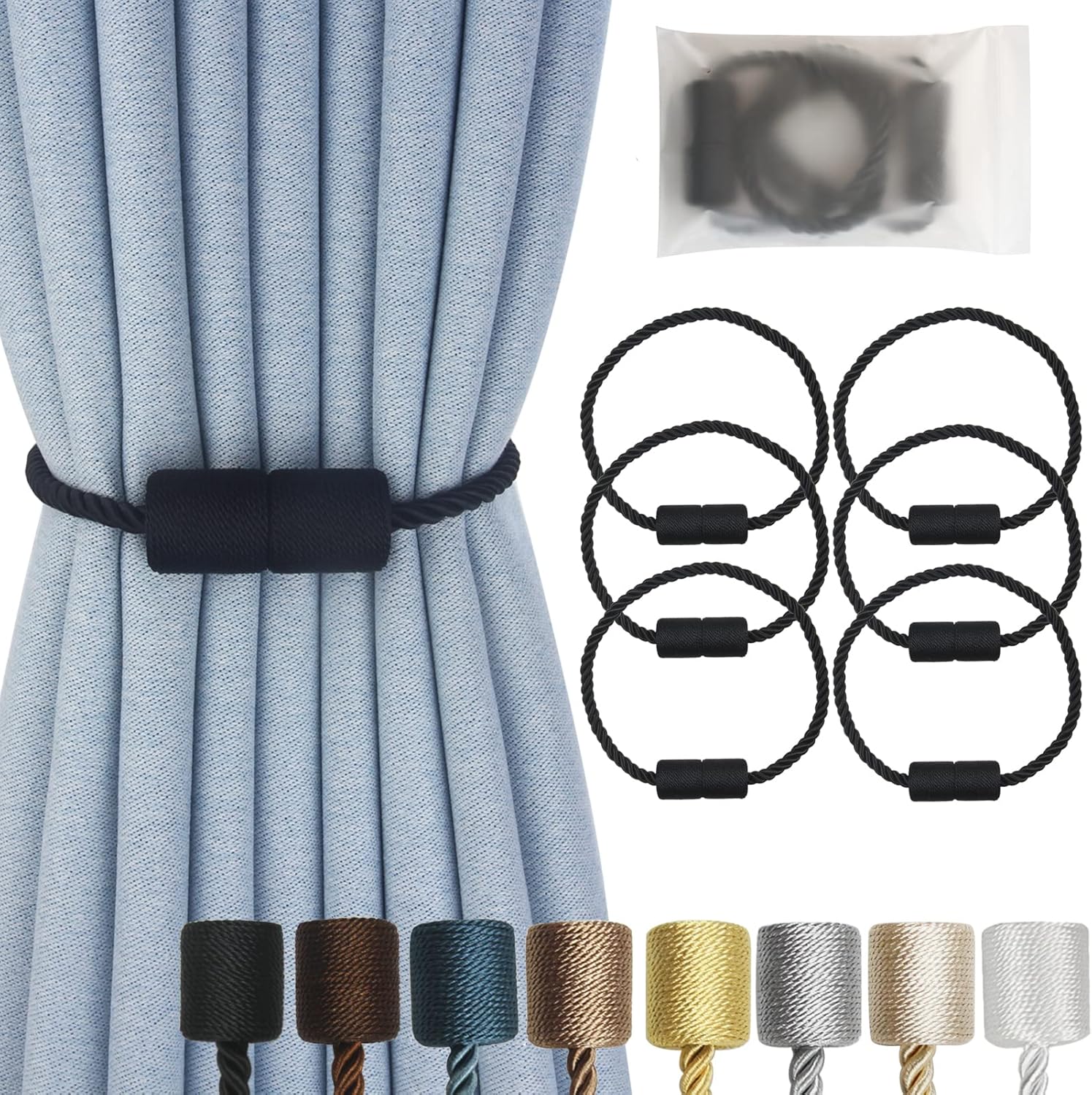 Magnetic Curtain Tiebacks 6 Pack Black Curtain Rope Tieback Curtain Holders for Drapes Modern Tie Backs Decorative Curtain Holdbacks