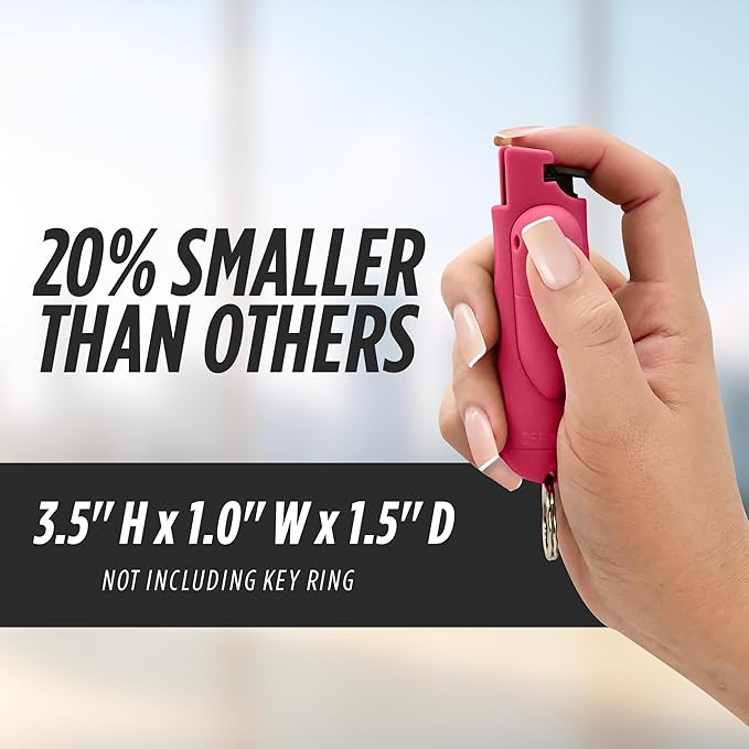 - COMPACT AND QUICK-ACCESS DESIGN: The pepper spray for women and men is 20% smaller and making it even more convenient to carry with you wherever you go. The included quick-release key ring provides faster access to the spray when every second counts. With a secure and easy-to-use twist lock safety mechanism, you can rest assured that your pepper spray is always ready for action while remaining safe to handle