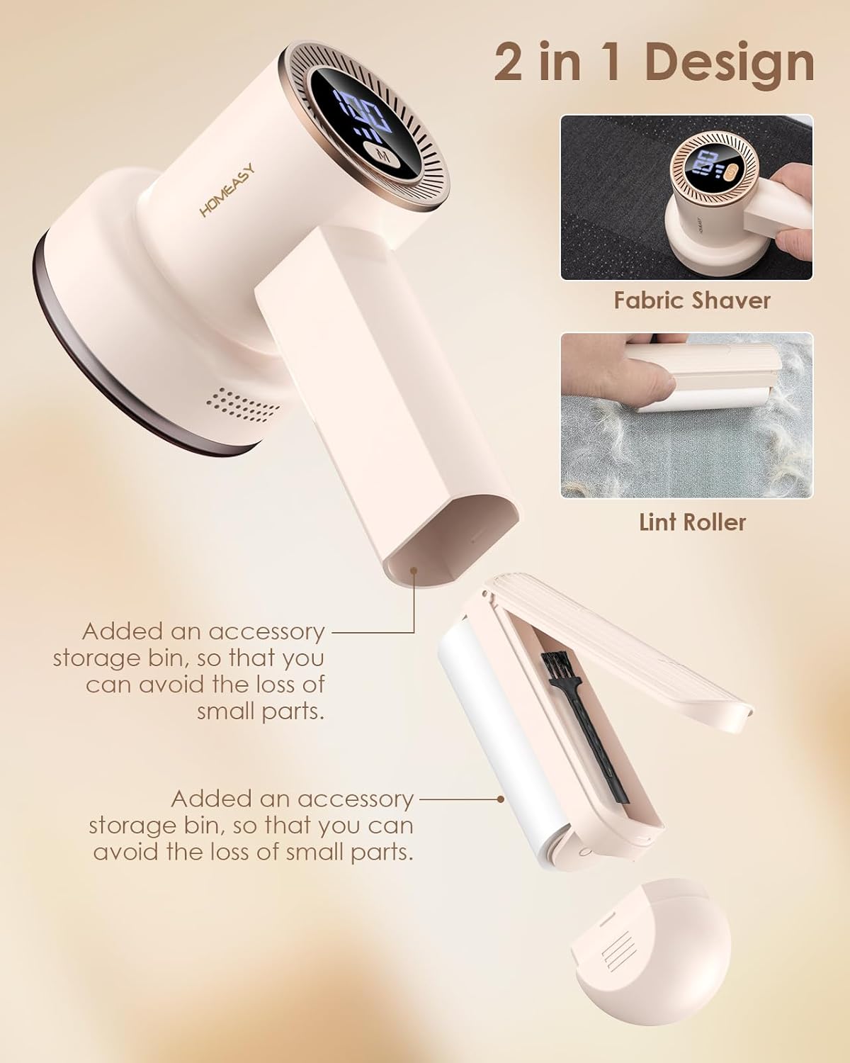 Fabric Shaver Fuzz Remover Rechargeable, HOMEASY Electric Lint Remover Shaver with 3 Blades & LED Digital Display, Sweater Couch Fabric Pill Shaver for Sweater, Couch, Furniture