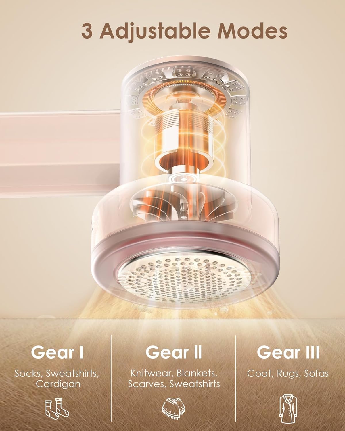 - 2. Efficient Lint Shaver for Furniture - Our sweater lint remover comes with 3 speed settings (I/II/III). Firstly, this fabric lint pill shaver mesh cover has 3 sizes of holes, which can quickly clean up hair balls of different sizes. Secondly, compared to the traditional 3-leaf blades, we equip with 3pcs rust-proof 6-leaf blades, which can greatly improve the working efficiency of the fabric lint remover and meet the needs of all fabric surfaces
