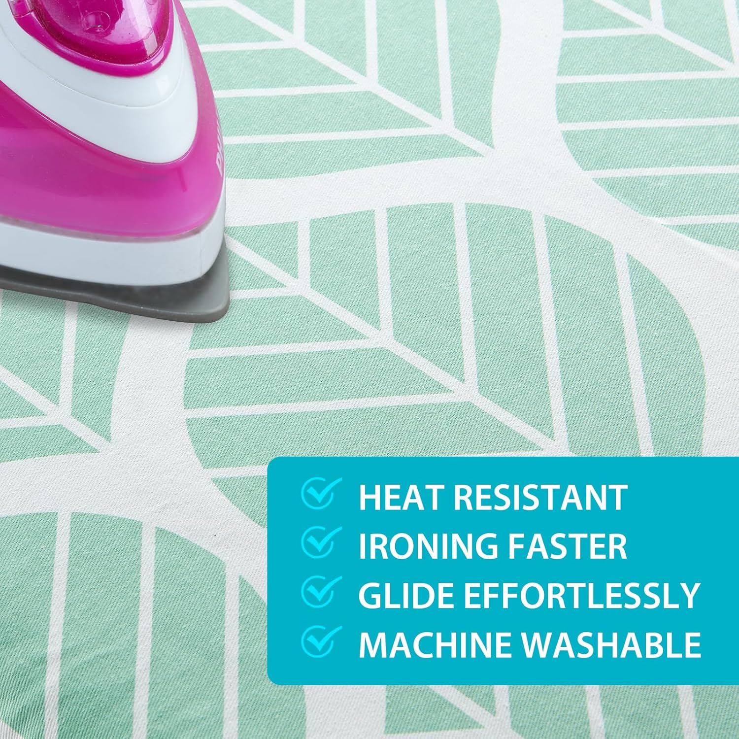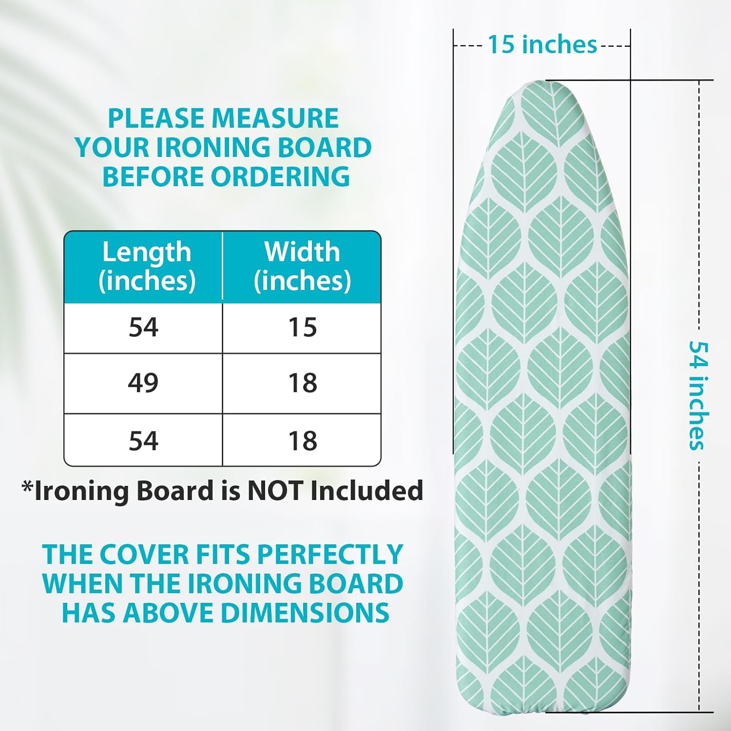 Ironing Board Cover and Pad, Standard Size 15 x 54, Thick Padding with Elasticized Edges, Heat Reflective with Hook and Loop Fasteners, 3 Layers Iron Board Cover (Green Leaf)