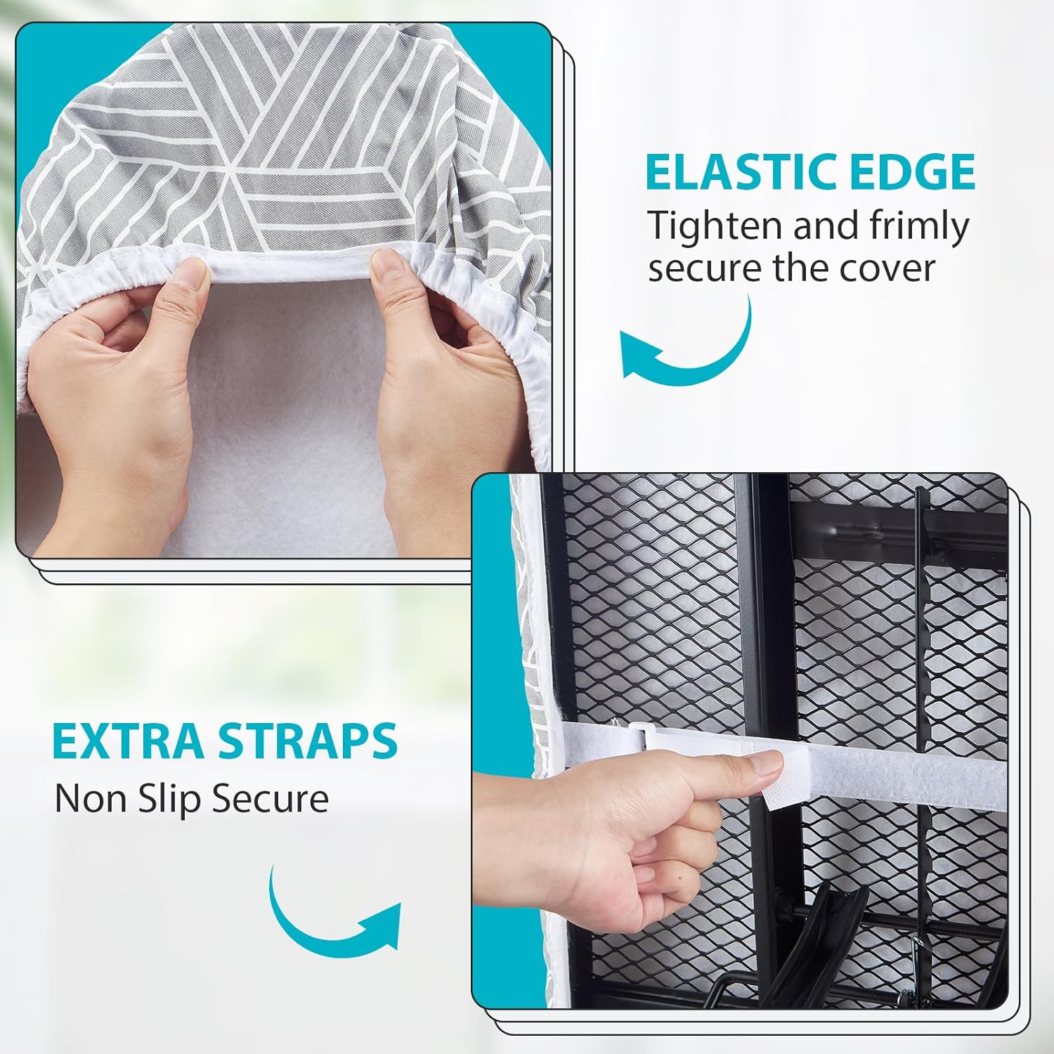 - SECURE ON YOUR IRONING BOARD TIGHTLY: The unique double non slip nose bag simplifies installation and secures it firmly in place. The elastic edge can tighten and straighten the ironing board cover to ensure that it is not easy to move or slide