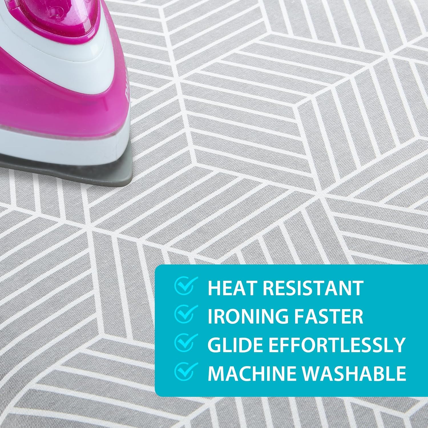 Ironing Board Cover with Padding 15 x 54 inch Standard Full Size, Heat Reflective with Hook and Loop Fasteners, Thick Padding with Elasticized Edges, 3 Layers Iron Board Cover (Gray Cube)