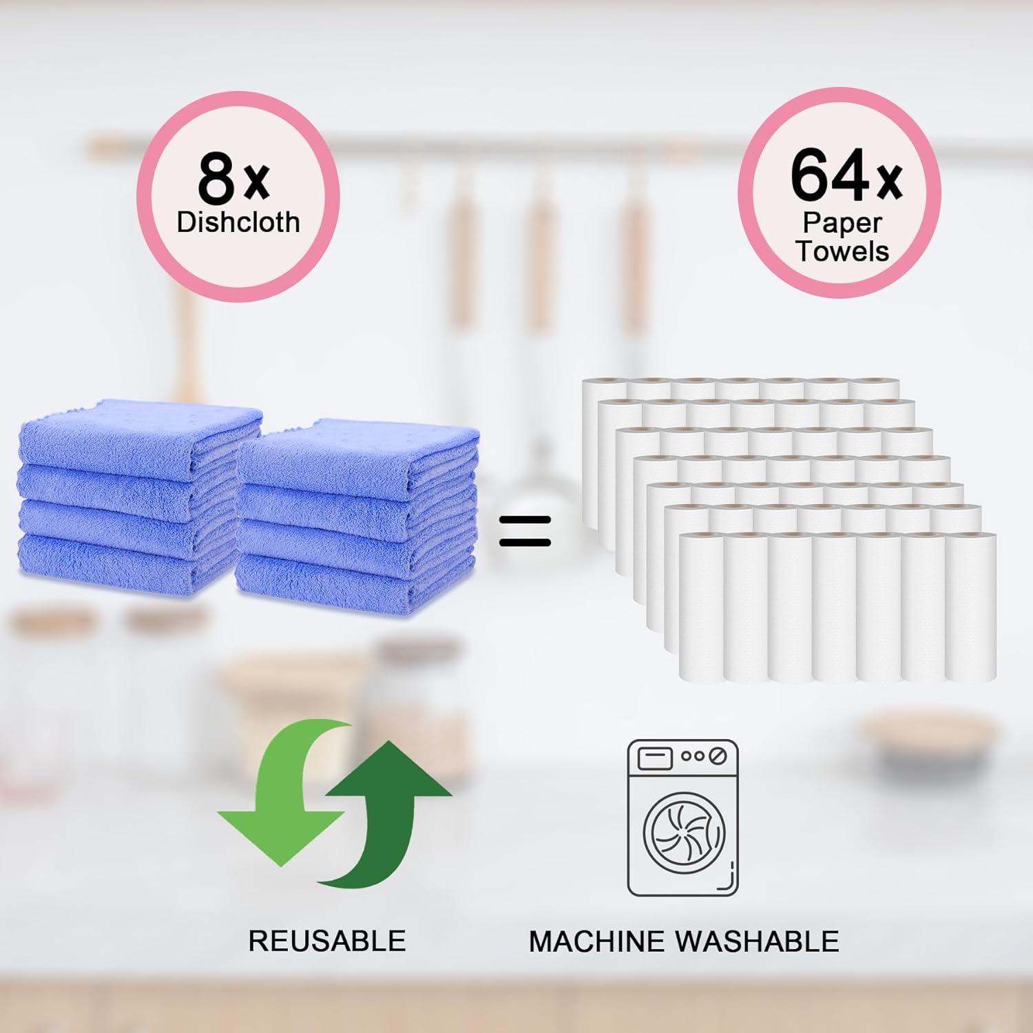 kimteny Kitchen Cloth Dish Towels, 13x28 Inches Premium Dishcloths, Super Absorbent Coral Velvet Microfiber Cleaning Cloths, Fast Drying Rags for Washing Dishes (13x28-8 Pack, Blue)