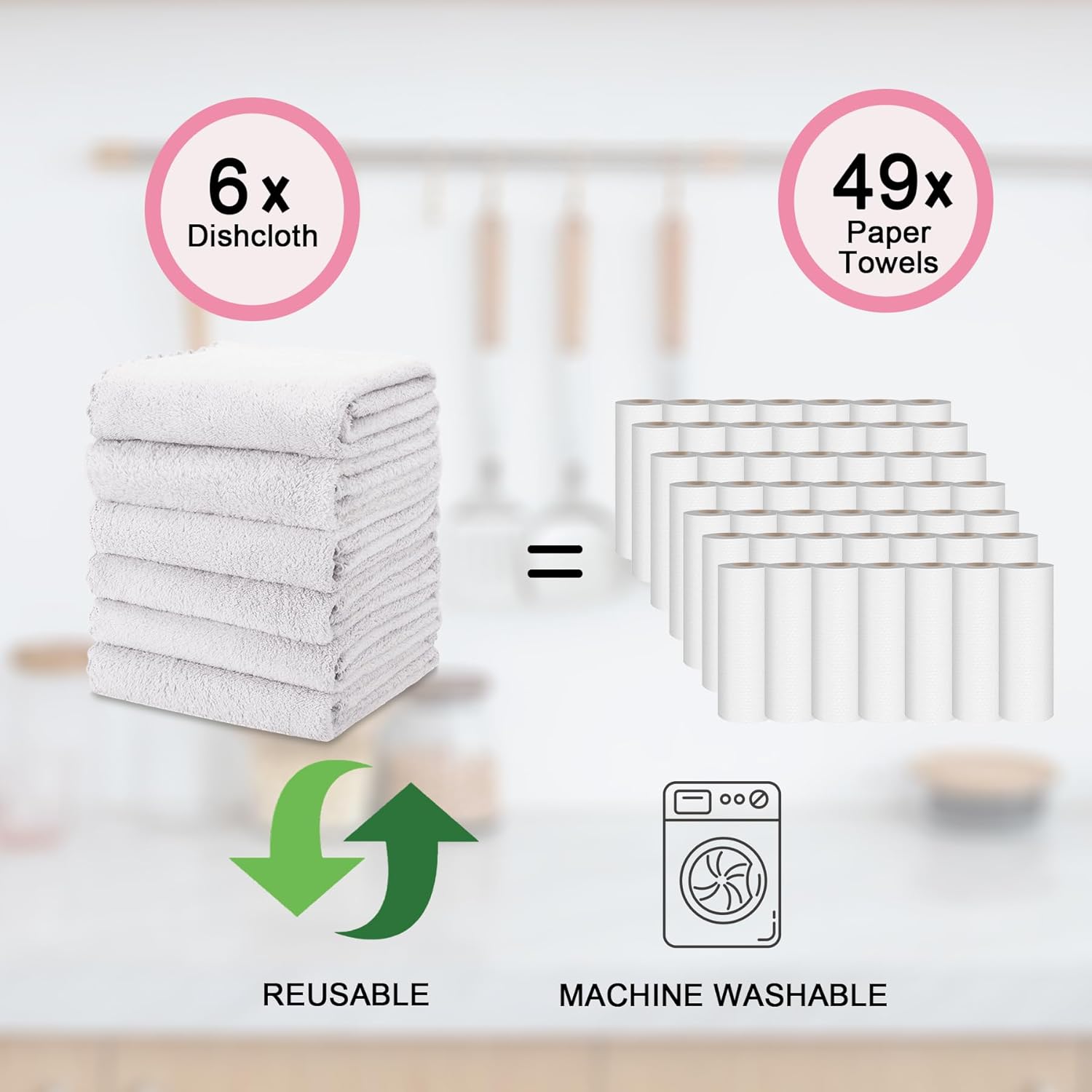 kimteny Kitchen Cloth Dish Towels, 13x28 Inches Premium Dishcloths, Super Absorbent Coral Velvet Microfiber Cleaning Cloths, Fast Drying Rags for Washing Dishes (13x28-6 Pack, White)