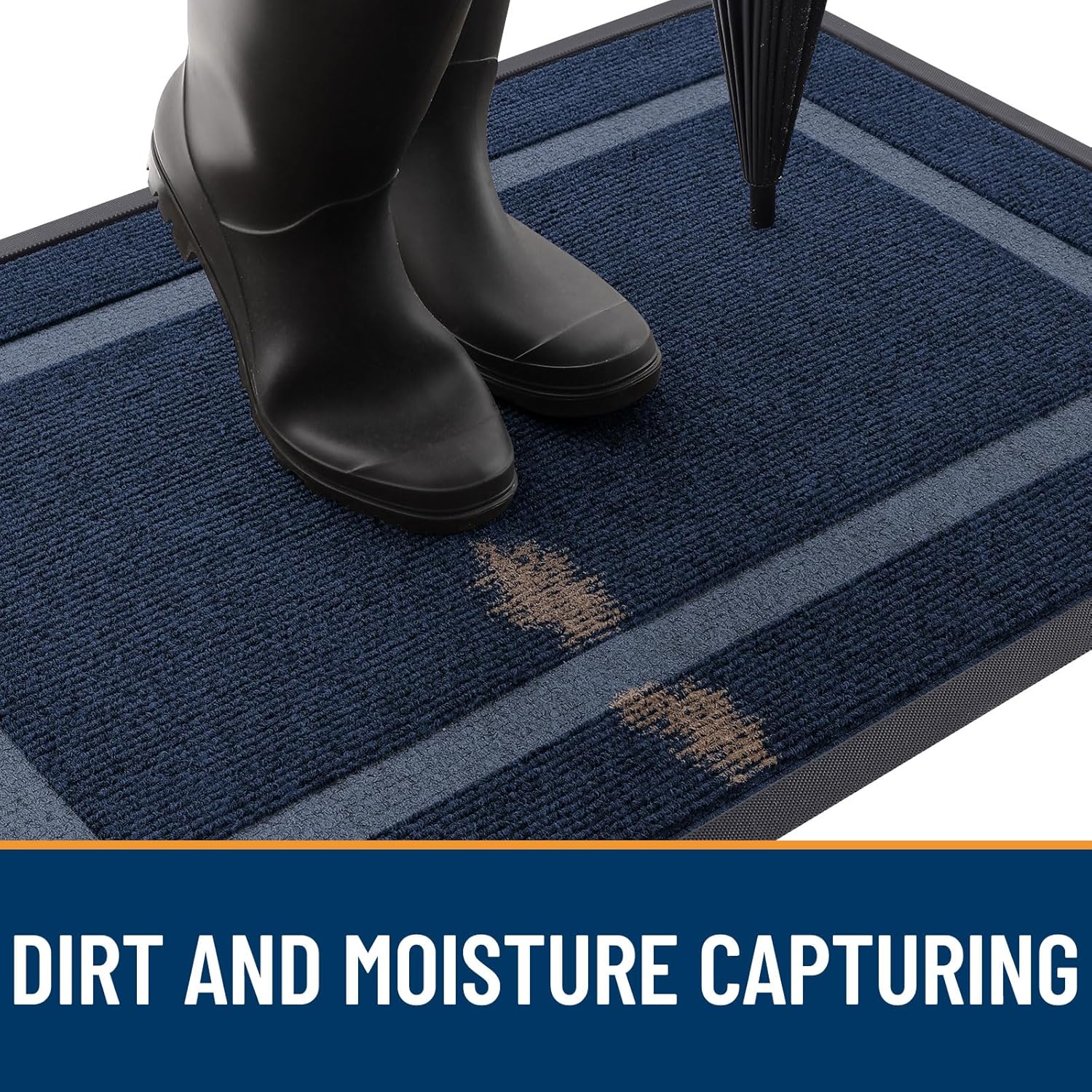 OLANLY Front Door Mat Indoor Outdoor Entrance, Waterproof All-Season, All-Weather Doormat, Sturdy Natural Rubber, Fade Resistant, Low Profile, Easy Clean Patio Porch Entryway Mat, 36x24, Blue